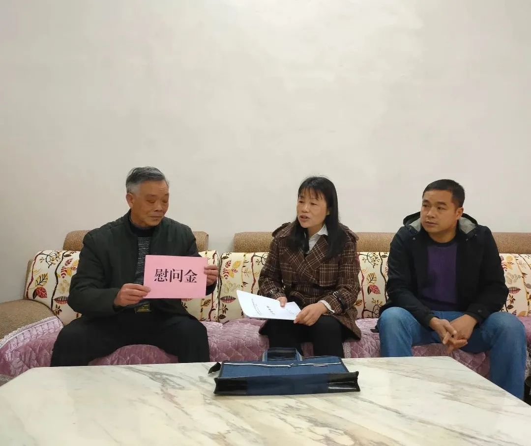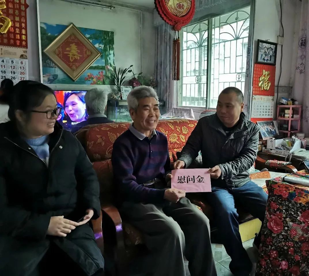 图为县委常委、县纪委书记、县监委主任卢剑华(左一)到老干部家中慰问