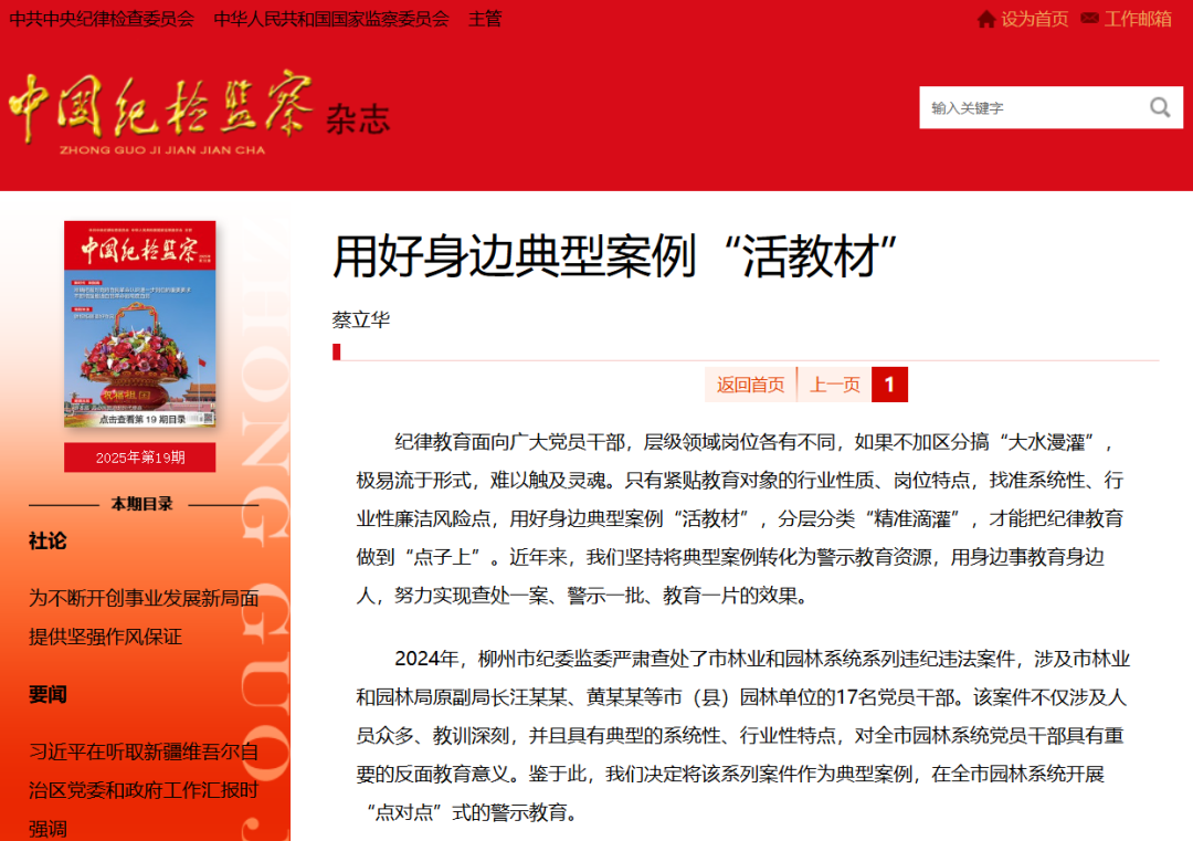 要闻中国纪检监察杂志 | 用好身边典型案例“活教材” |