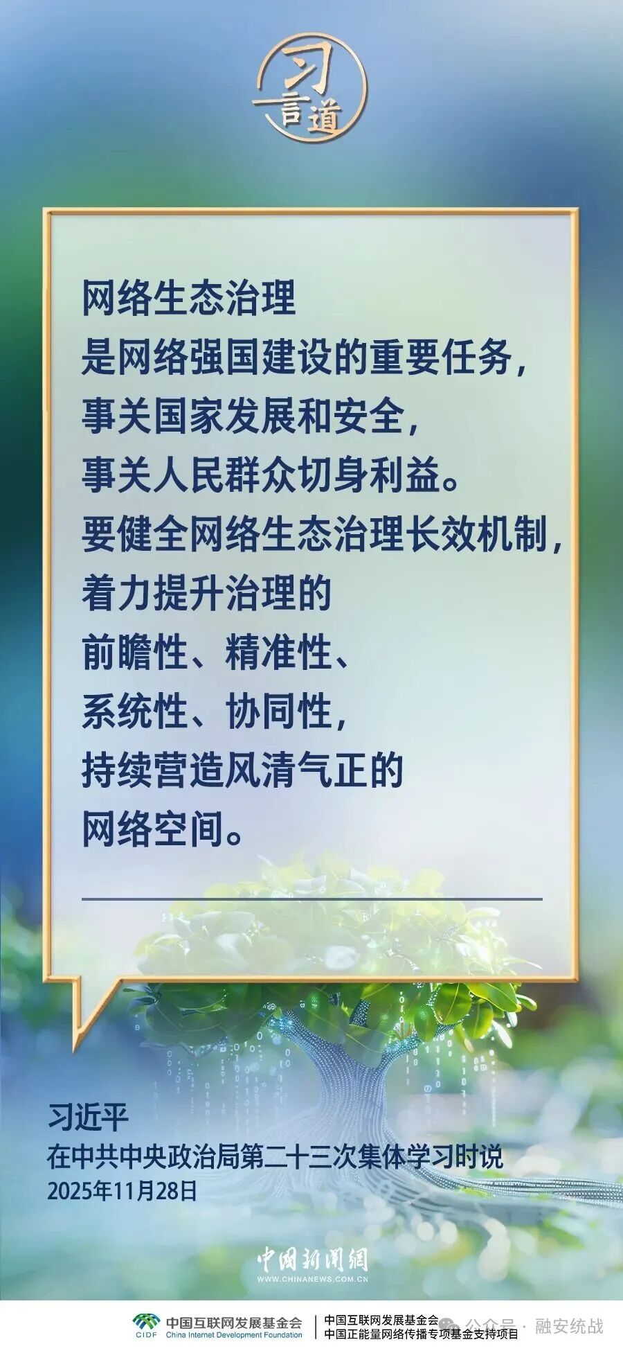 中共中央政治局11月28日就加强网络生态治理进行第二十三次集体学习。中共中央总书记习近平在主持学习时强调——