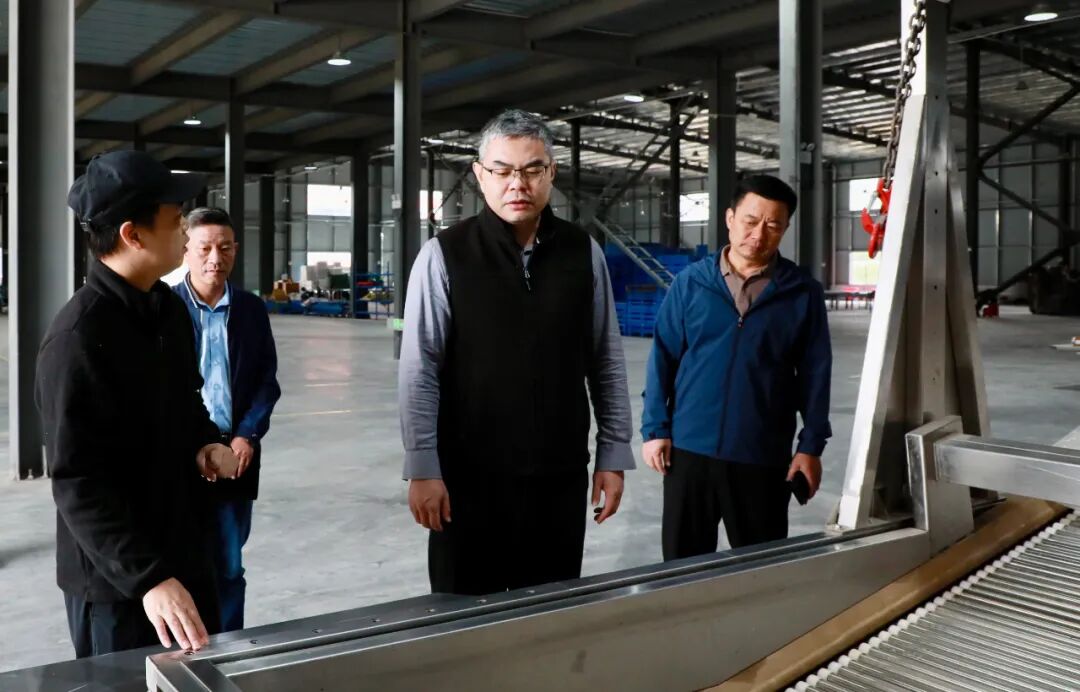 10月21日,融安县委书记于福坚(前右一)到柳州融安金园食品有限公司调研。(方淑敏 摄)