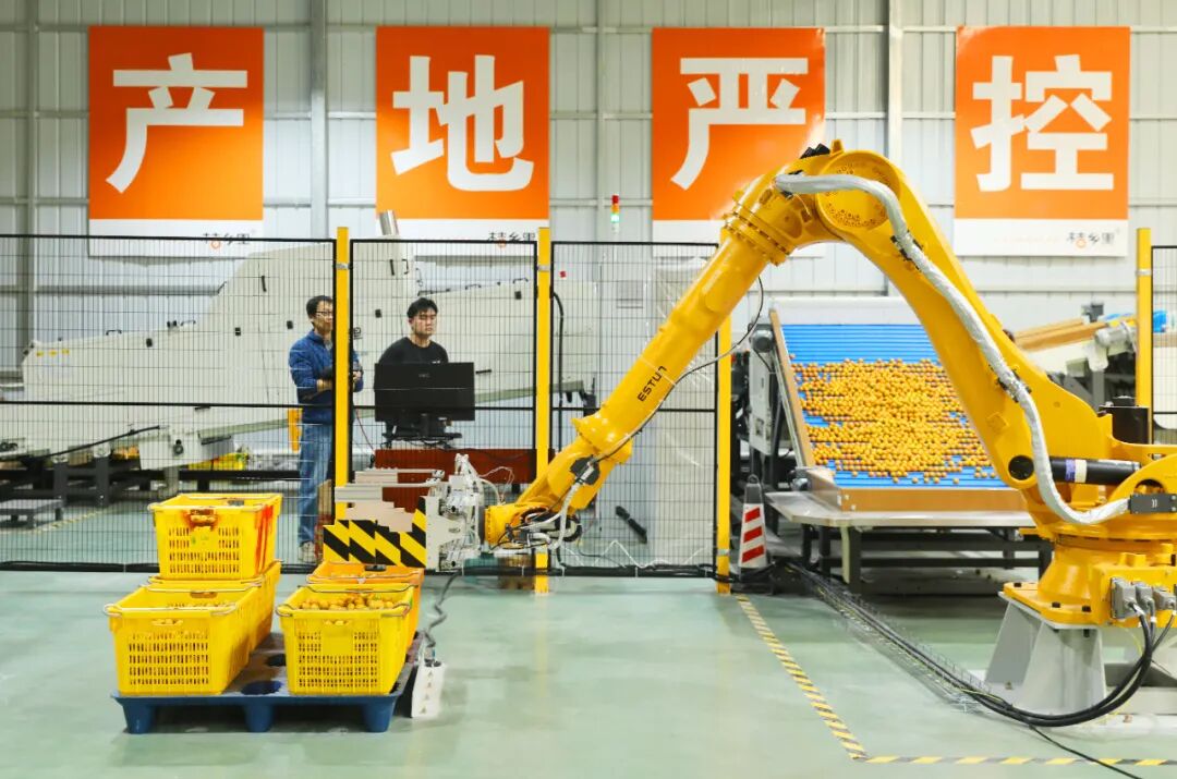 “以前我们搬运、分拣金桔靠人工,不仅效率低,还容易出现果品损伤的现象。”广西融安桔乡里农业有限公司经理赖明婵介绍道,通过引进AI自动化搬运叉车、智能自动机械臂搭配无损伤测糖、克重分级、外观检测系统,能精准筛选出优质金桔,按大小筛选到固定的框内,分选率达90%,实现了从采摘到入库的全流程标准化。