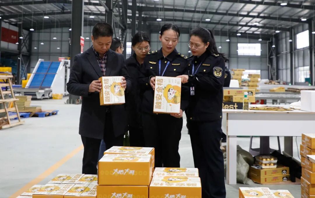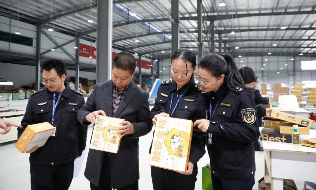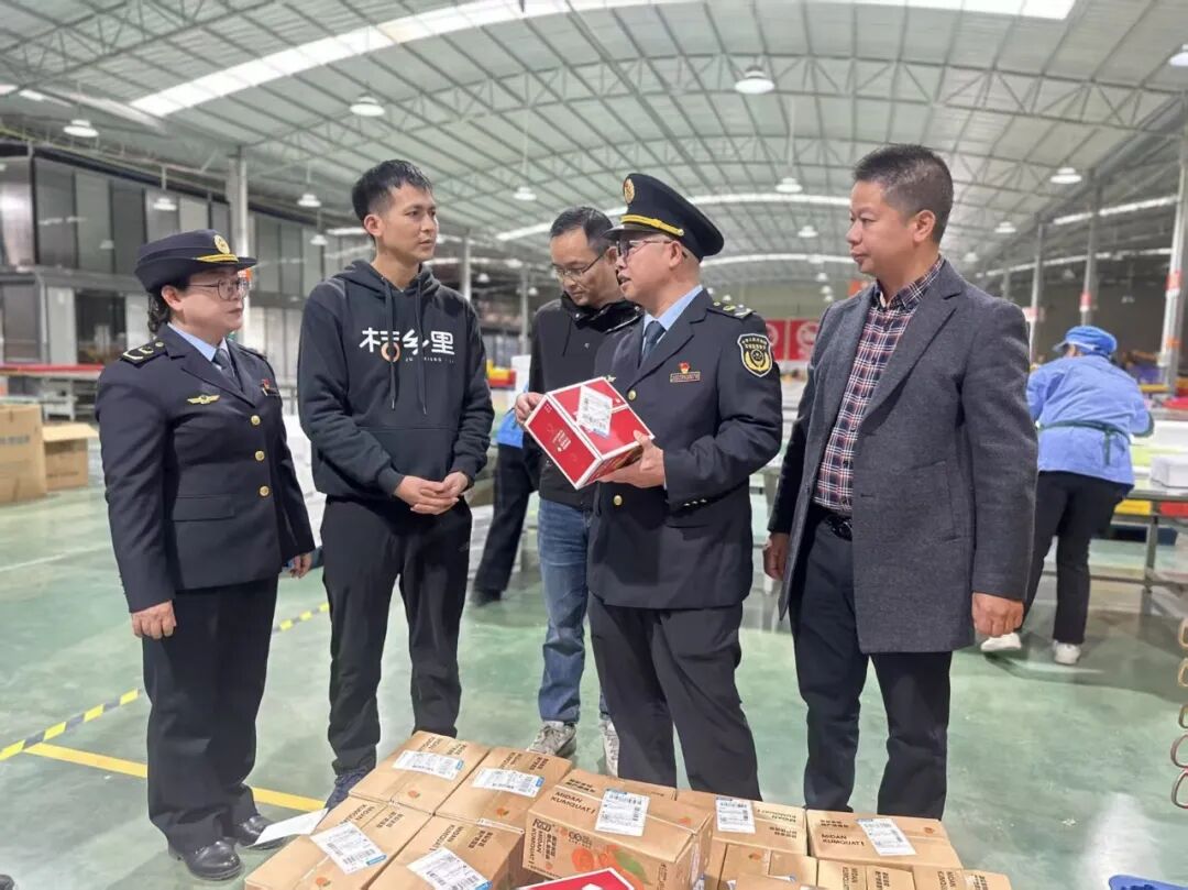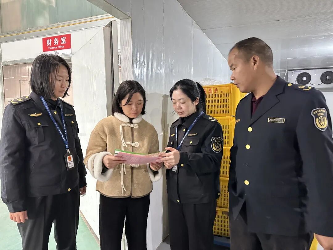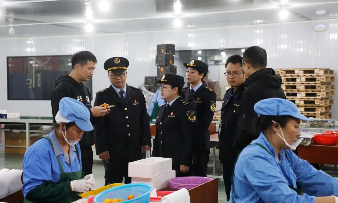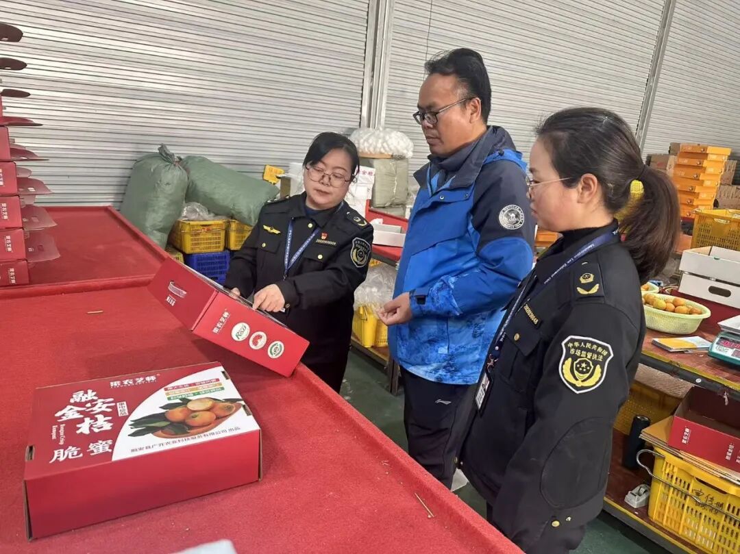 融安县农业农村局联合县市场监督管理局到金桔企业开展执法行动。(龙丹 摄)