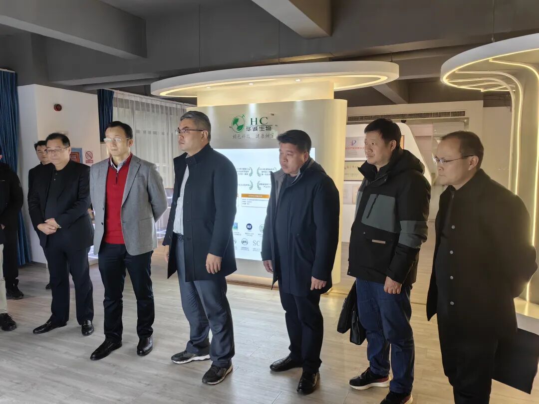 2月27日,融安县委书记、县长于福坚(左三)带队到湖南华诚生物资源股份有限公司进行招商考察交流活动。(韦友龙 摄)