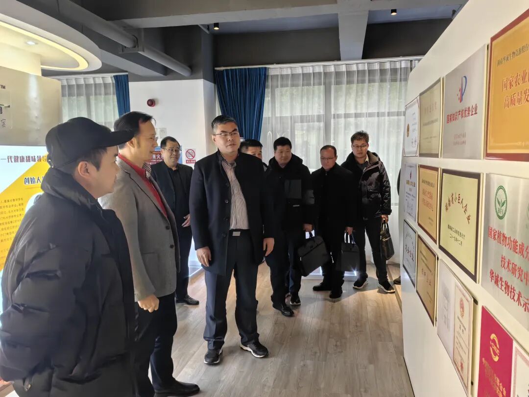 2月27日,融安县委书记、县长于福坚(左三)带队到湖南华诚生物资源股份有限公司进行招商考察交流活动(韦友龙 摄)