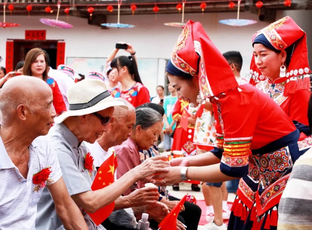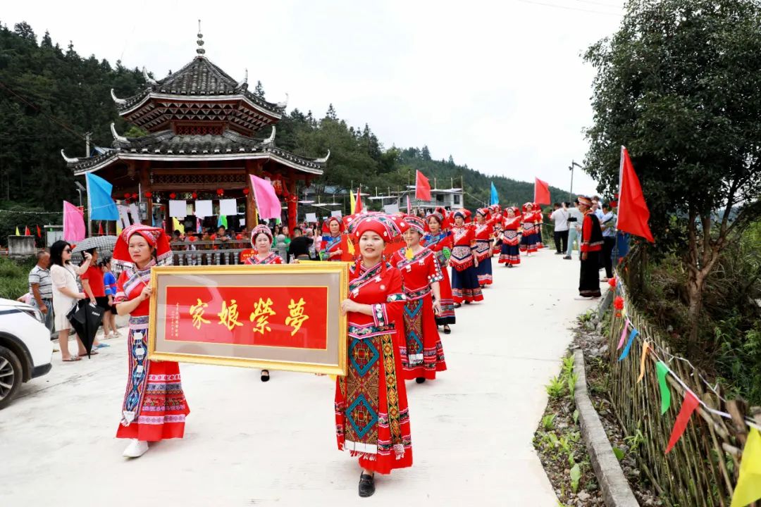 10月1日,在古龙村平寨屯拍摄的板榄镇古龙村首届姑娘回门节活动现场。(骆余梦 摄)古龙村人希望外嫁女们常回家看看,古龙村永远是她们的家,是她们最坚强的后盾,呼吁大家共同组建一个朝气蓬勃、团结友爱、互帮互助的大家庭,有喜同贺、有难同当、携手并进为家乡乡村振兴助力。