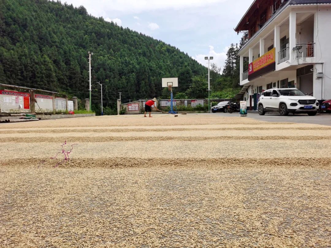 在板榄镇各村,类似的场景在近日一幕幕上演,村民们趁着晴好天气抓紧收割、晾晒,颗粒归仓。