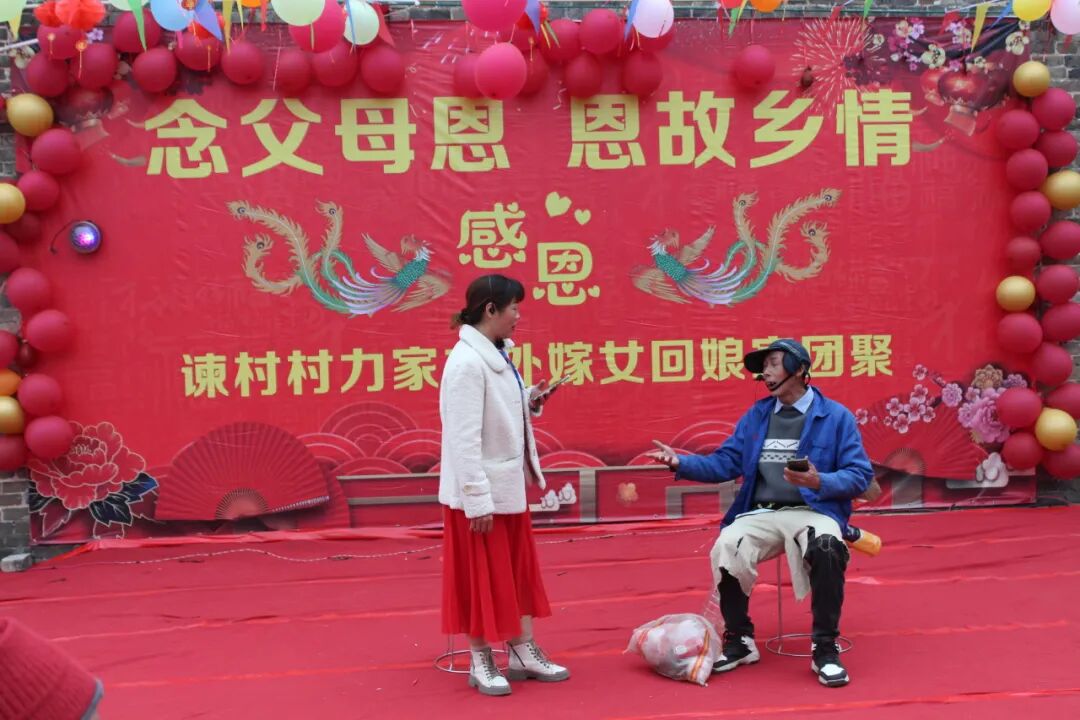 2月14日,正月初五,谏村村力家屯举办“念父母恩 恩故乡情”外嫁女回娘家活动,现场气氛热烈,欢乐十足!