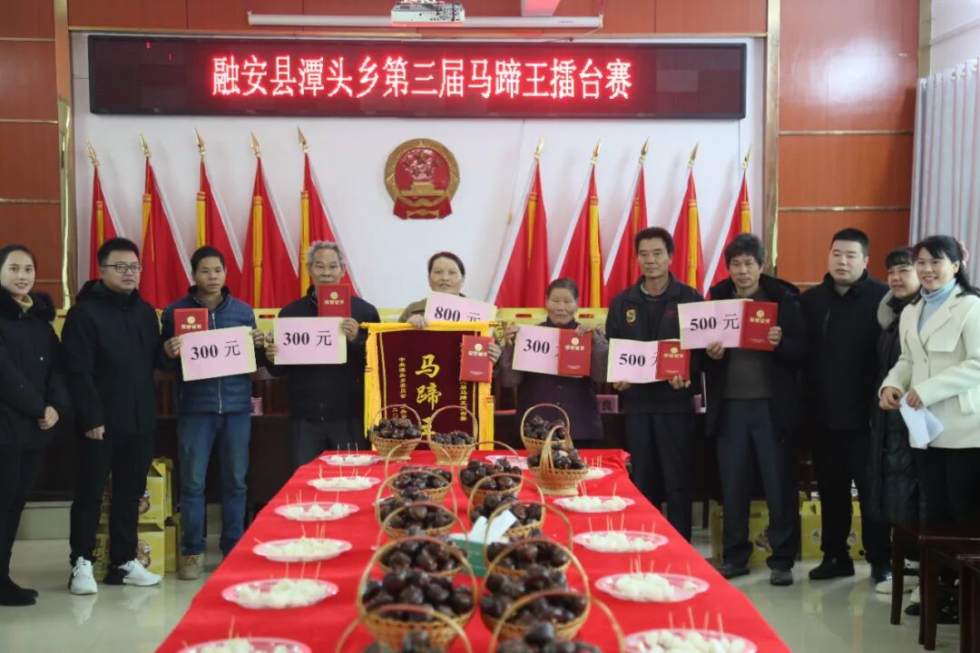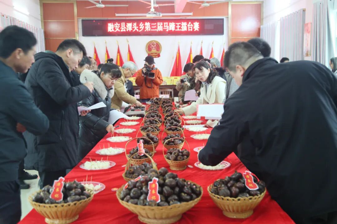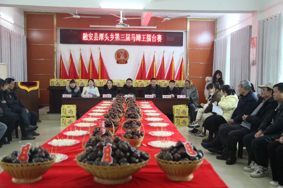 1月30日上午,潭头乡第三届马蹄王擂台赛成功在乡政府举办。经过初赛,来自潭头乡各村的19名参赛选手进入决赛,他们带上自家种植的马蹄,在擂台上比个头论重量测甜度凭口感,角逐“马蹄王”称号,大家欢聚一堂,共享喜悦。