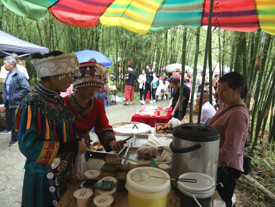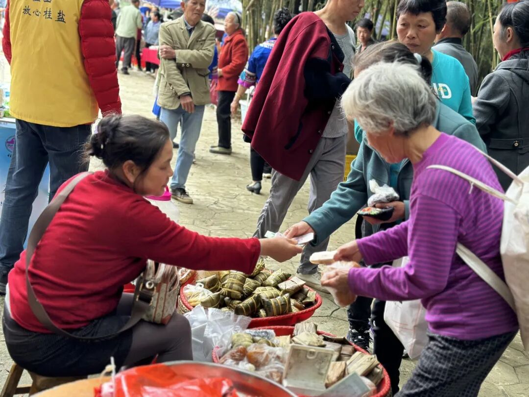 场外还设置了多个农特产品展销摊位,油蛋、糍粑、罗汉果干等特色农产品琳琅满目,引来不少“城里客”寻到乡愁味。