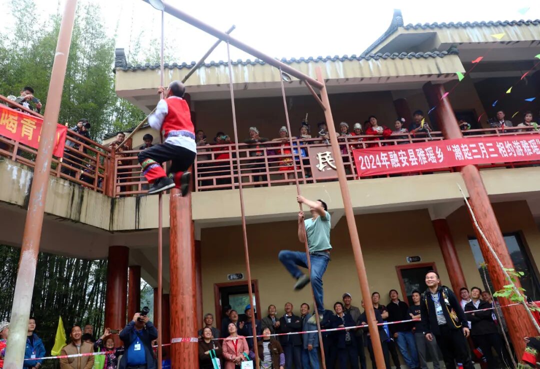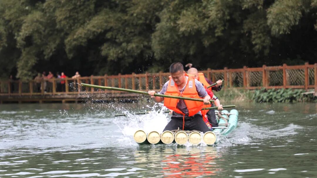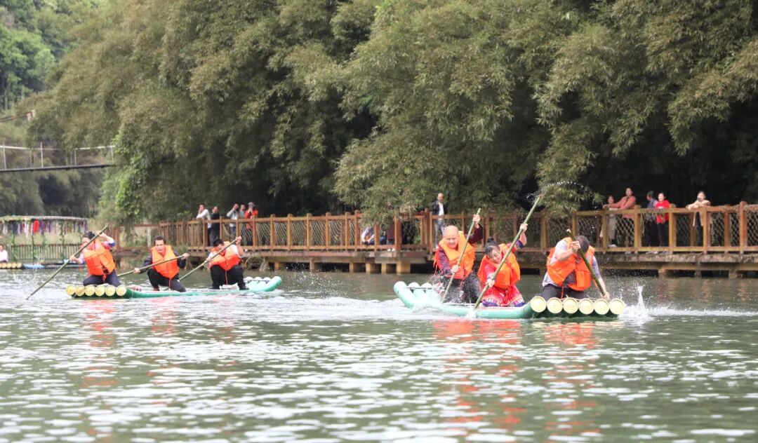 在激烈的呐喊声中,“势均力敌”拔河、“捷足先登”爬竹竿、“力争上游”划竹排等彰显技巧和力量、传统与时尚交相辉映的体育竞赛精彩上演,点燃现场火热氛围,以体育编织的民族团结的纽带,激发群众的运动热情,弘扬传统民族文化,展示了各民族群众勠力同心、砥砺前行的良好精神风貌。