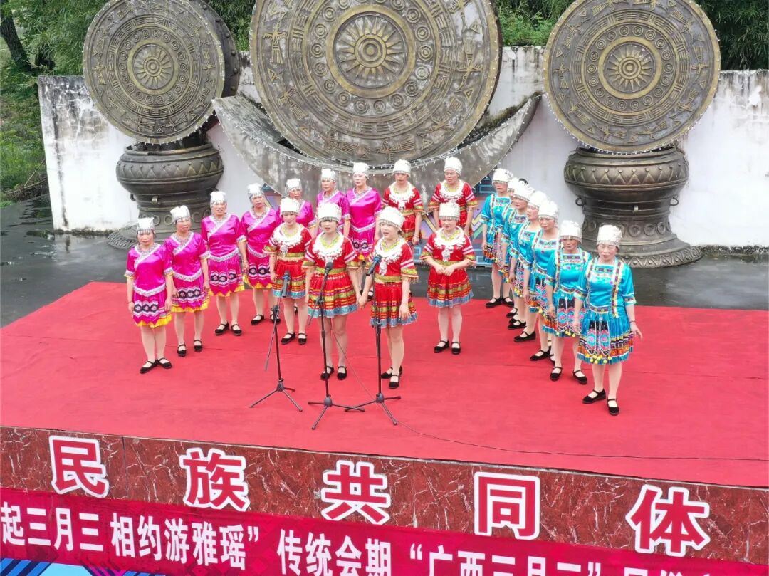浓情三月人如海、歌如潮。“壮族三月三”不仅有民族热舞,唱山歌更是刻在广西人骨子里的基因。各村山歌“斗歌”比赛正式开始,围绕宣传党的二十大精神、全面建成小康社会、大力推进乡村振兴、创建民族团结进步乡镇等主题,各村山歌其词曲生动,韵律齐整,朗朗上口,吸引众多观众驻足,在歌声中领略民族文化魅力。