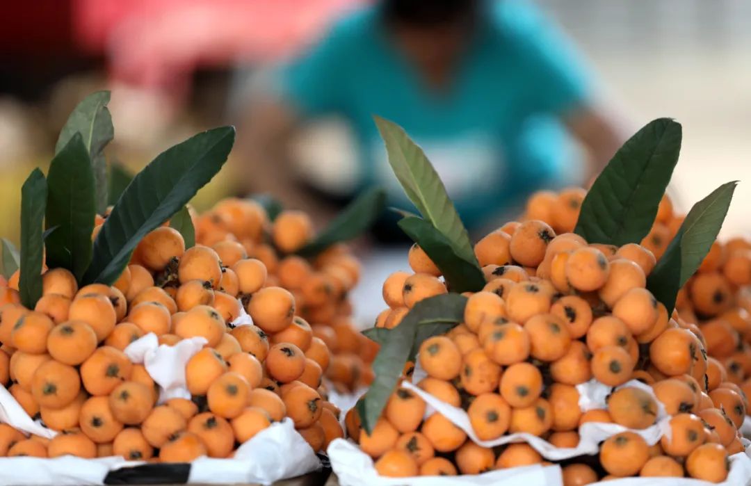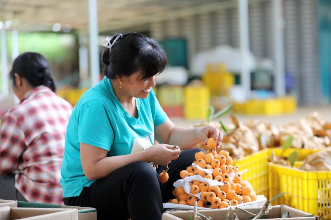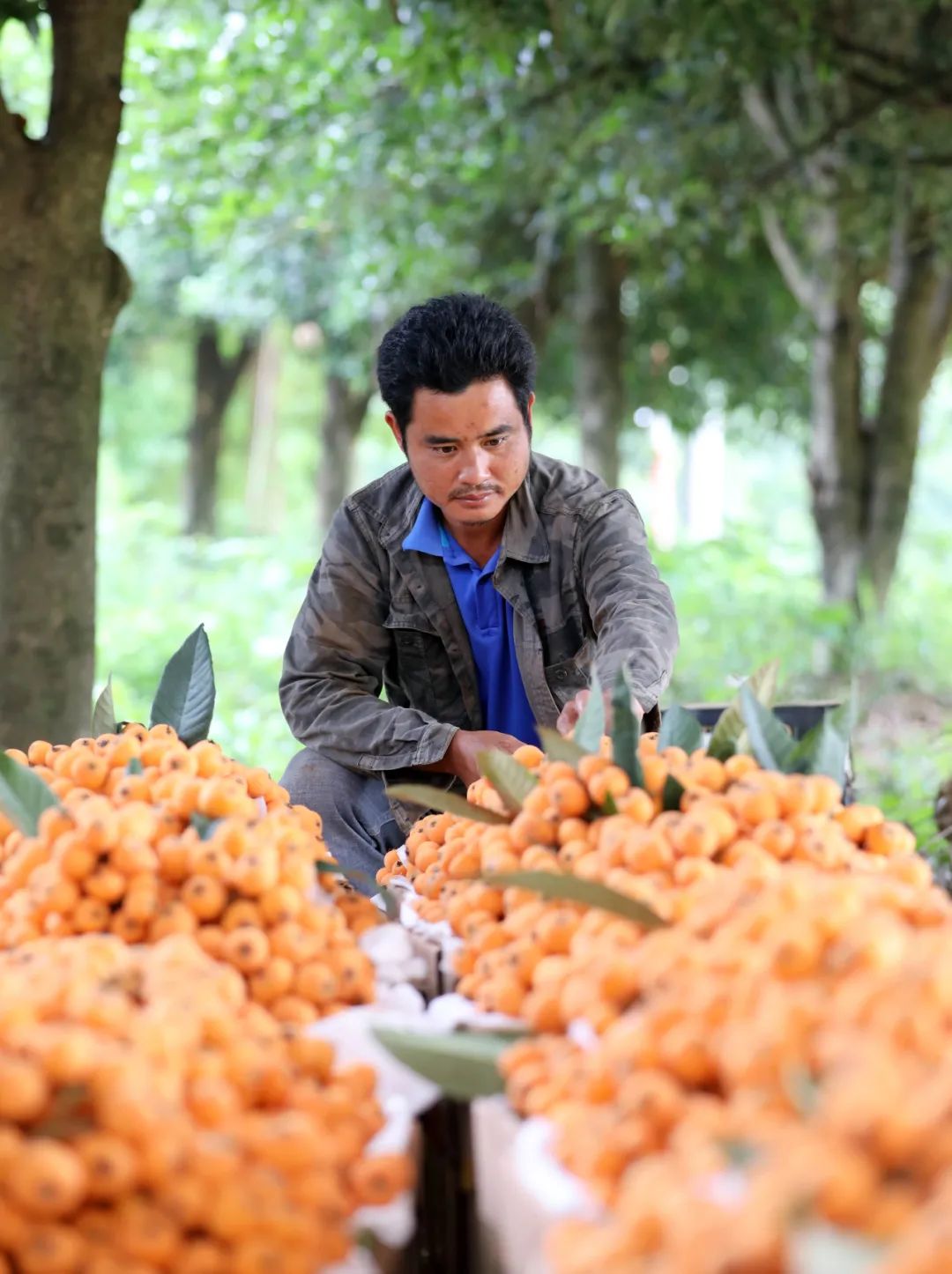 大良镇石门村独特的海拔、气候与土壤条件,为枇杷生长提供了绝佳环境。这里产出的枇杷主要有板红、长虹、大红袍,果型硕大,果肉厚实,汁水丰沛。在枇杷种植地里,果农撕开枇杷果外的套袋,金黄圆润的果实立即展露真容,浓郁果香扑面而来。