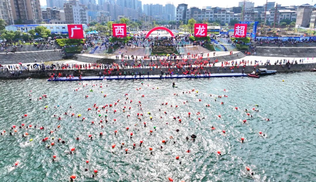 活动当天,来自各地的数千名游者齐聚融安,他们顽强拼搏、挑战自我,在搏浪击水后勇渡融江。开场曲目瞬间点燃全场气氛,游泳健儿们在工作人员的带领下进行热身。鸣笛声起,他们纷纷从龙舟广场一侧一跃而下,以矫健身姿续写“与江共生”的传奇,泳者劈波斩浪的身影,与两岸如织的观赛人群共同织就一幅全民狂欢的盛景。