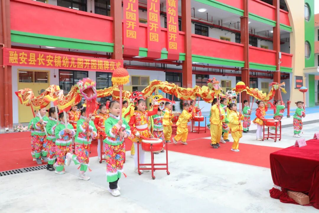 据悉,融安县长安镇幼儿园是利用原长安镇第四小学闲置校舍改扩建一所公办幼儿园,目前开设小、中、大6个班级,现有教职工 30 人,幼儿园 2023年12月开始预报名,至此报名幼儿已达 180 人,将于2024年春季学期正式开园办学。该园的场地、设施、设备均按照幼儿园建设标准进行建设和配备,拥有生活馆、绘本馆、美工室、多媒体活动室等各种功能室。户外配备大型体育运动器材,有大型滑梯、搭建器械、各类体能训练器材等,配套厨房一体化电器设备,监控及广播系统全覆盖,图书及教玩具数量众多,满足幼儿在园保教需求。