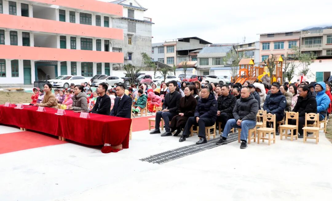 2月22日,在融安县长安镇幼儿园拍摄的开园揭牌仪式现场。(杨雯静 摄)