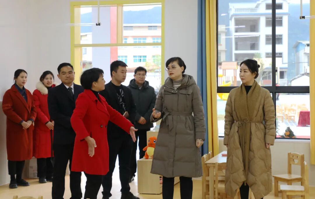 2月22日,县人民政府副县长陶媚(右二)参观融安县长安镇幼儿园教学环境。(杨雯静 摄)