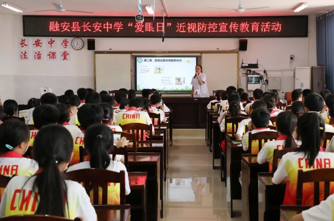 6月6日是第28个全国“爱眼日”。当天,融安县人民医院联合县长安中学开展“爱眼日”近视防控宣传教育进校园活动,关注学生群体的眼睛健康,为儿童青少年视力保驾护航。