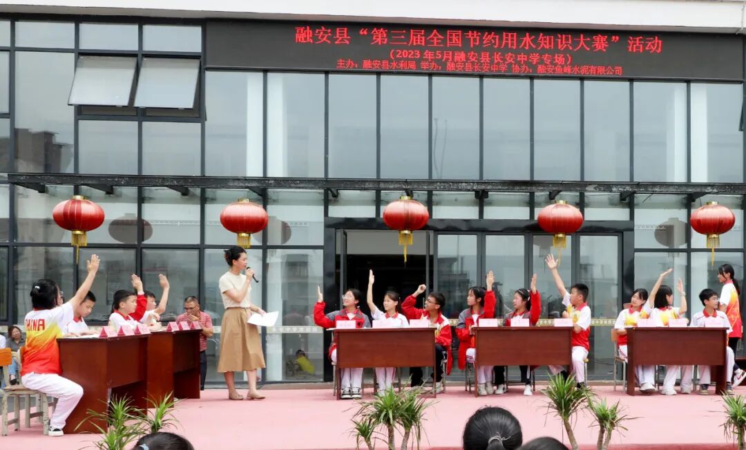 为营造良好的节水氛围,提高师生的节水意识,树立绿色生态环境意识和可持续发展意识,5月26日,融安县“第三届全国节约用水知识大赛”在县节水基地——融安县长安中学举行,教育引导学生树立良好的节水意识。
