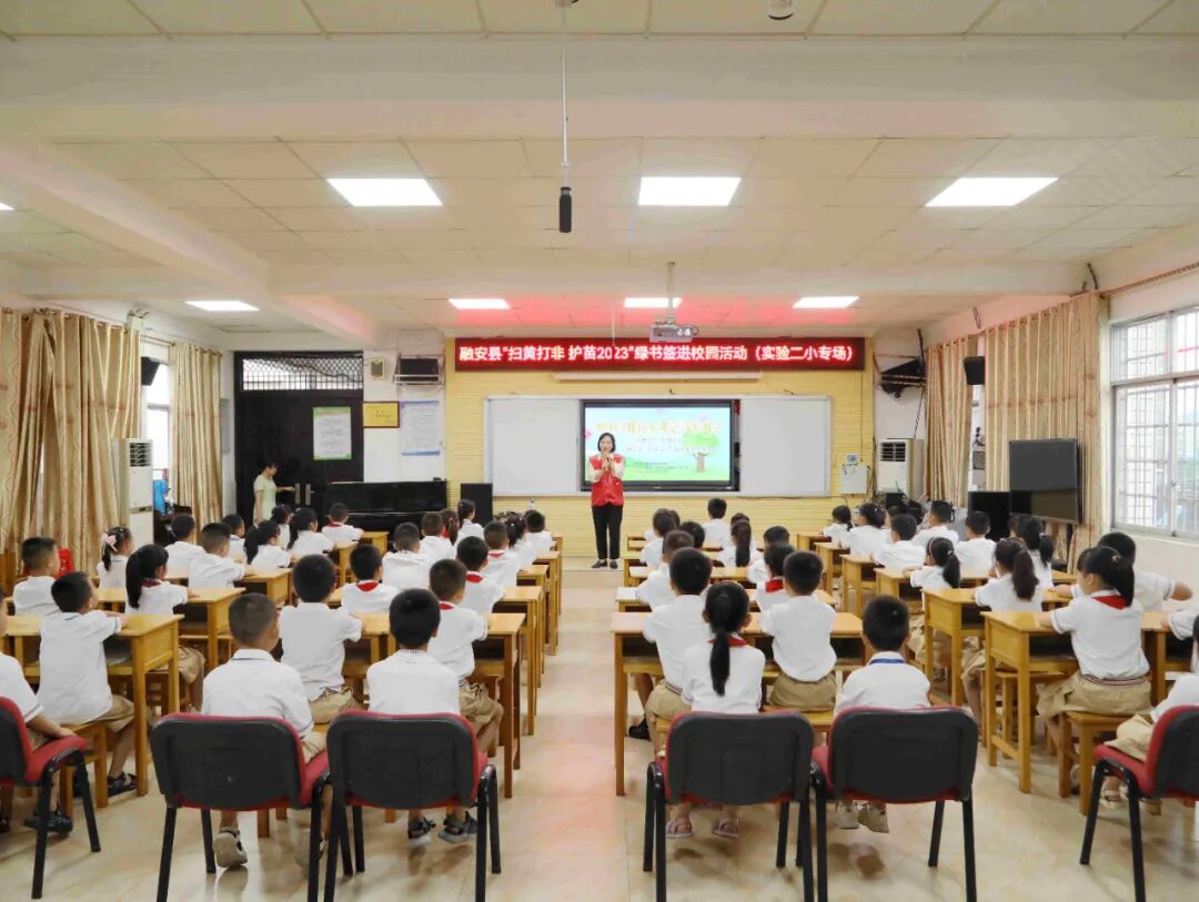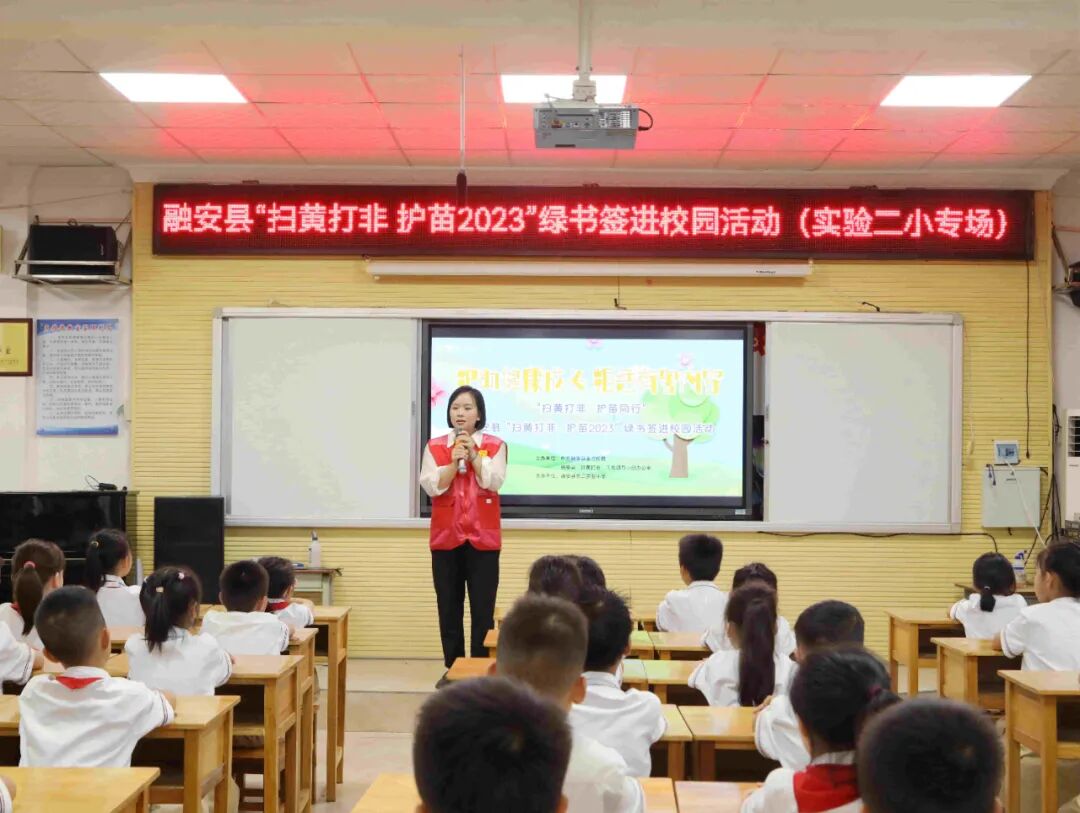 6月26日,融安县“扫黄打非 护苗2023”绿书签进校园活动(实验二小专场)在县第二实验小学多媒体教室举行,护航未成年人健康成长。