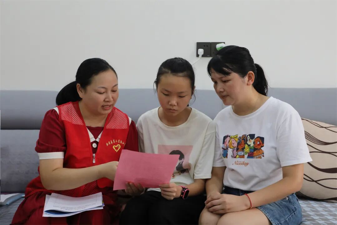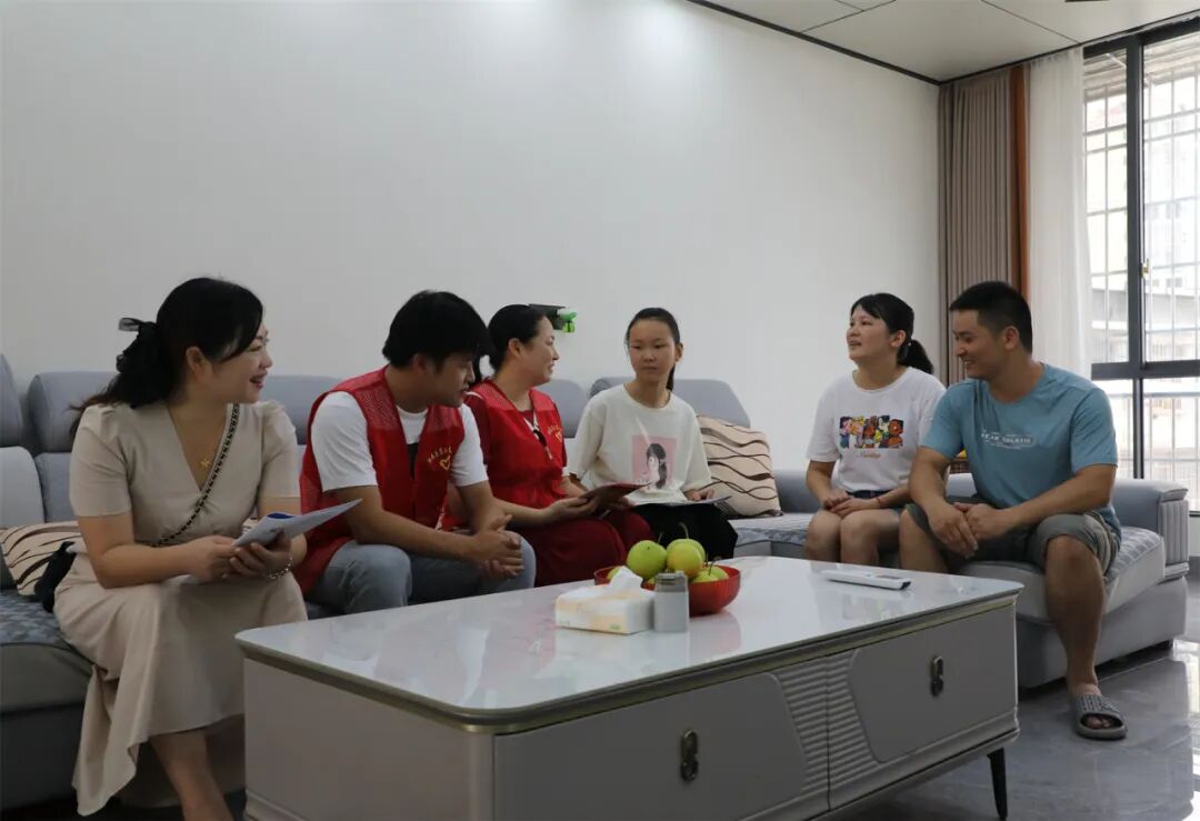 7月10日,融安县第二实验小学老师在学生家中家访,并宣传防溺水安全知识。(尹楚皓 摄)