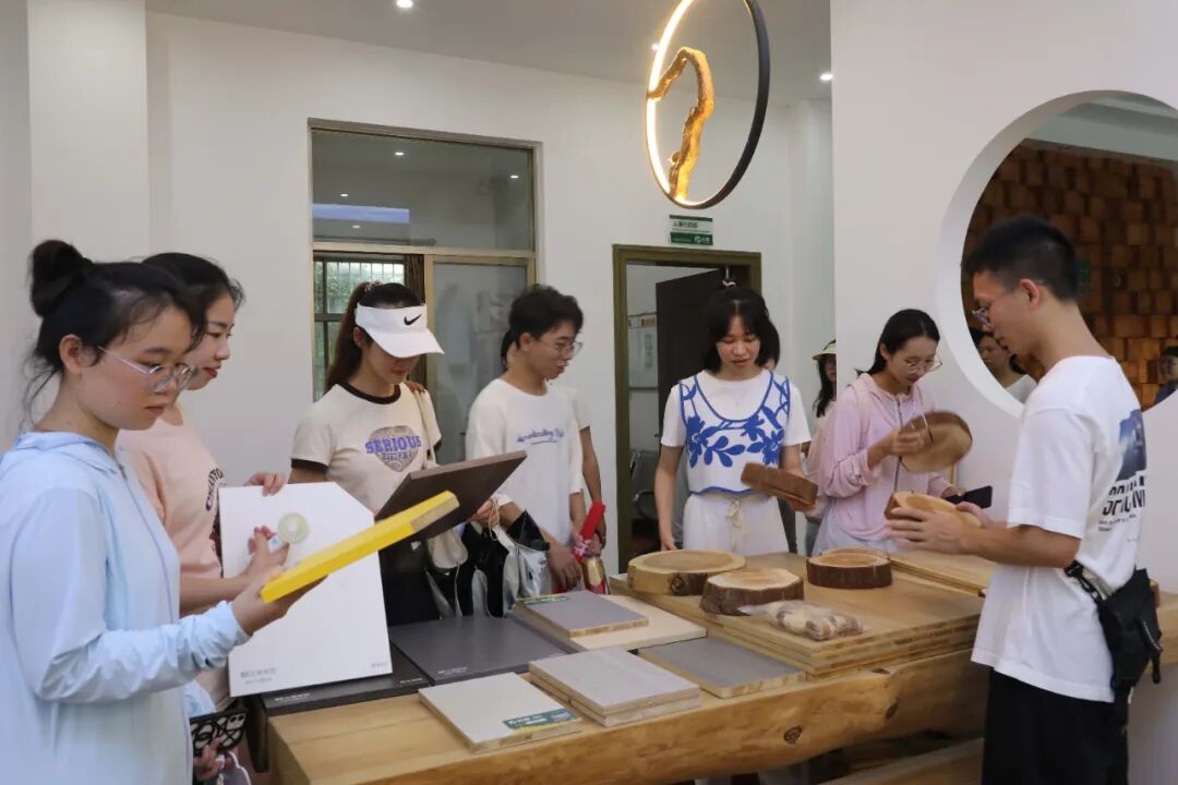 8月7日,在广西壮象木业有限公司,大学生在参观学习。(谢护香 摄)