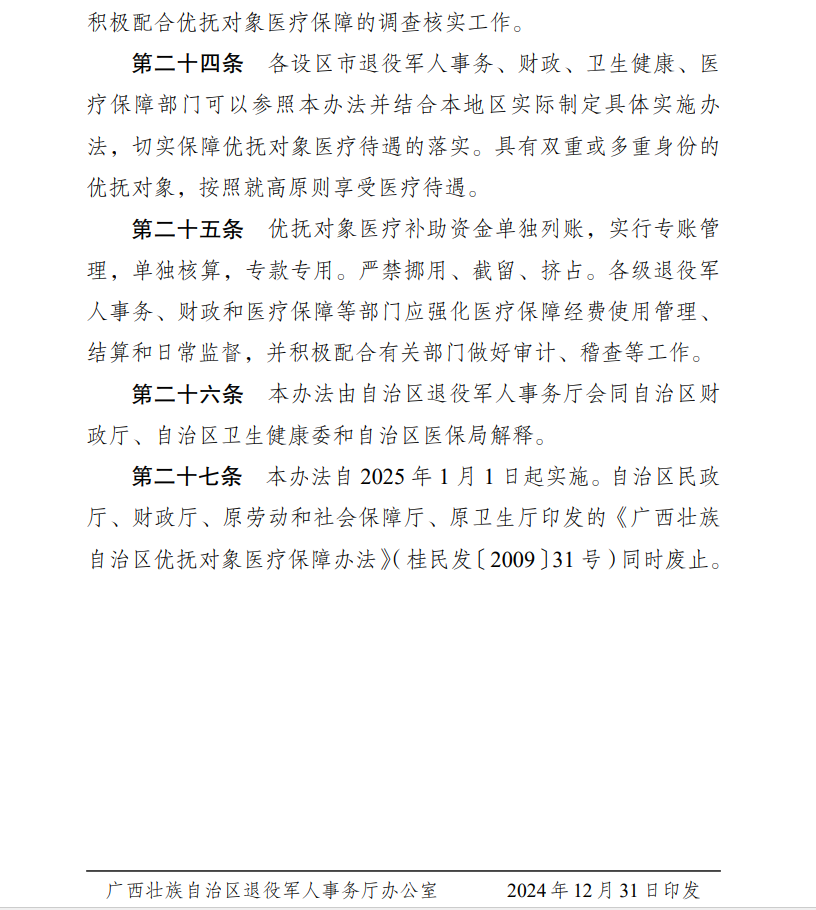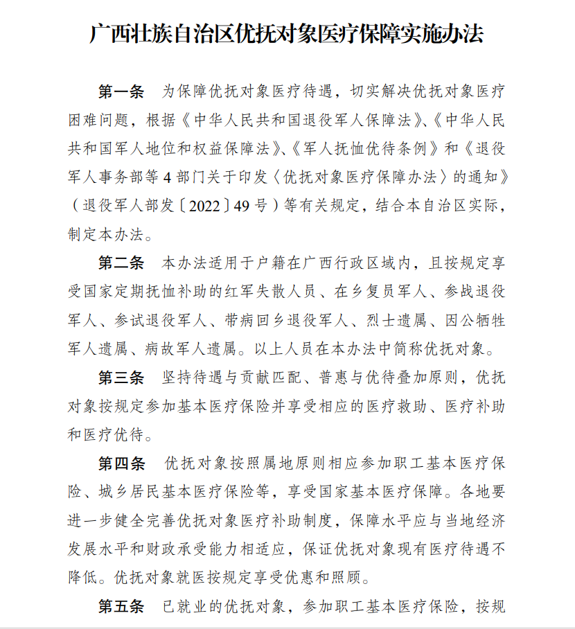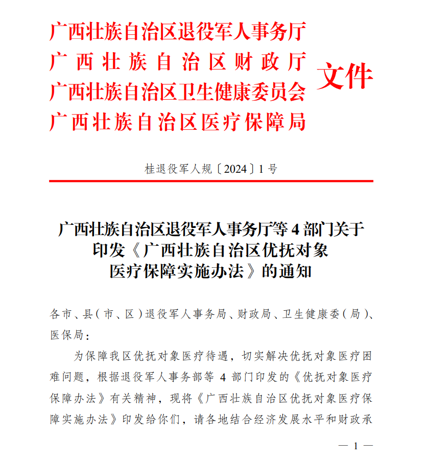 广西壮族自治区退役军人事务厅等4部门关于印发《广西壮族自治区优抚对象医疗保障实施办法》的通知