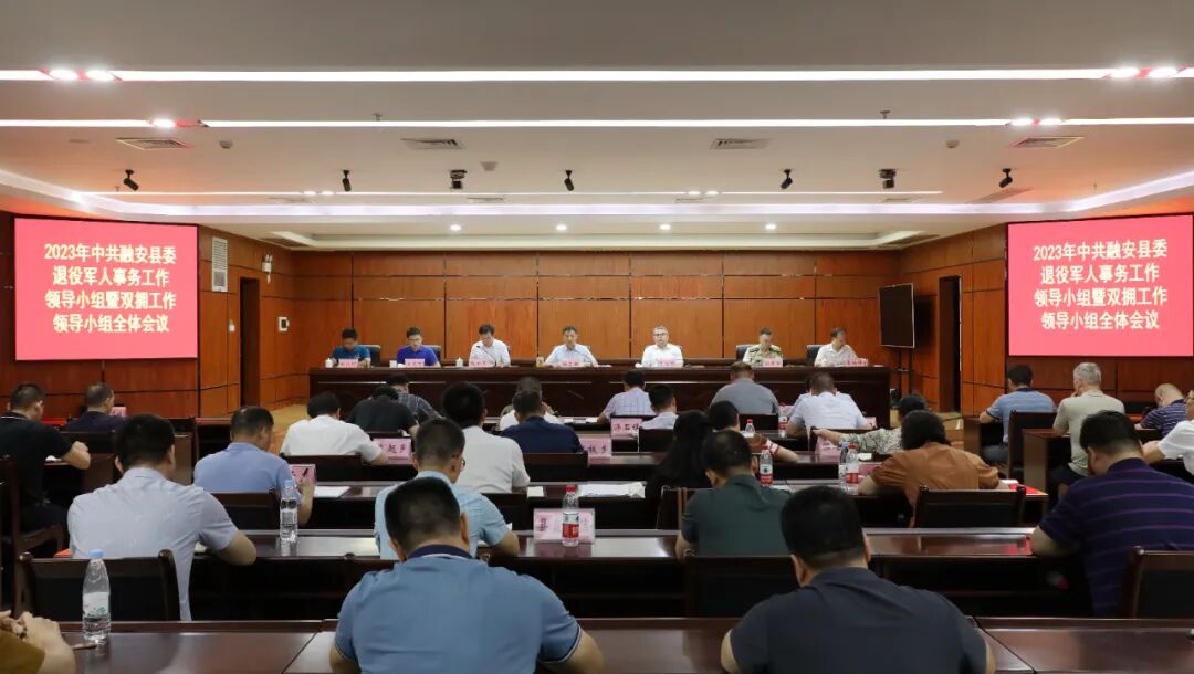 7月7日,2023年中共融安县委退役军人事务工作领导小组暨双拥工作领导小组全体会议在县商务中心主楼13楼会议室召开。