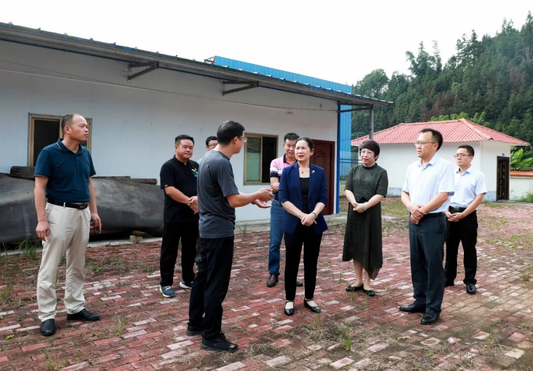 9月7日,自治区残联党组成员、副理事长许英凤(前左三)带队到融安县福禄农业发展有限公司大坡飞鸡种苗繁育基地调研。(骆余梦 摄)