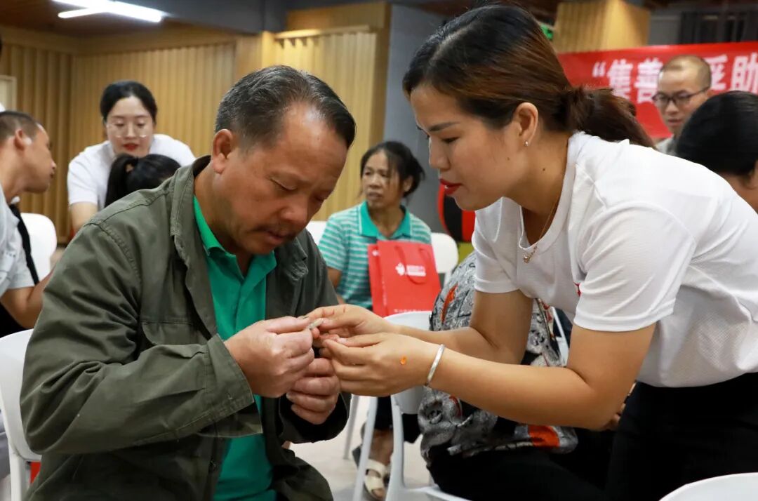 9月8日,湖南省健耳听力助听器有限公司的工作人员为听障患者义诊、公益测听、免费试配助听器。(骆余梦 摄)
