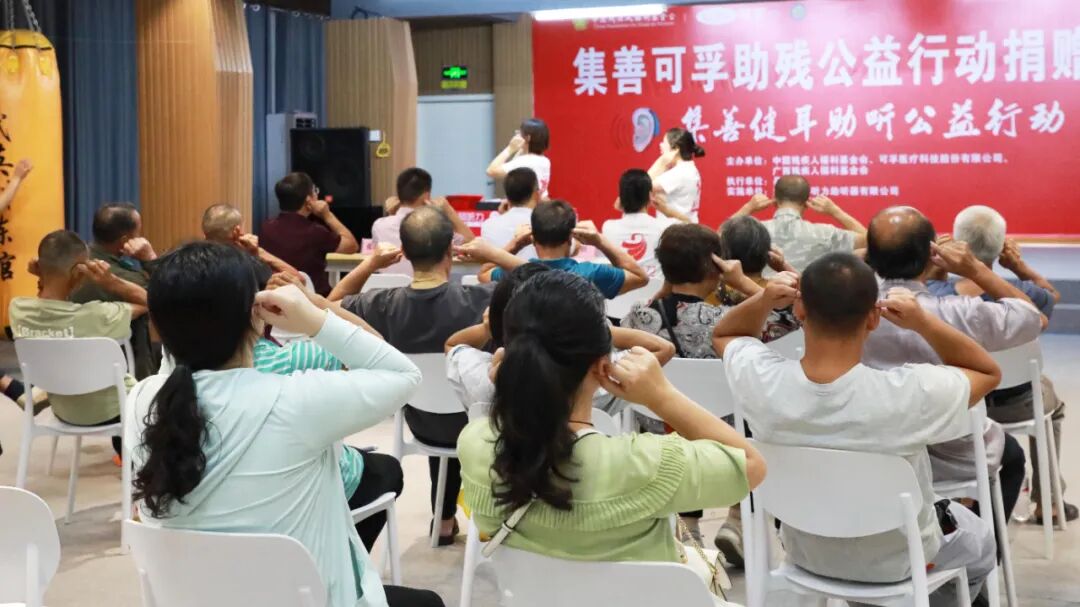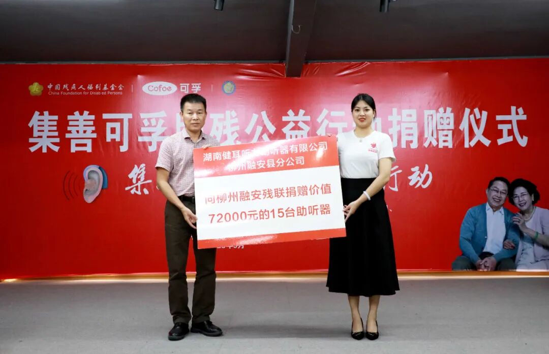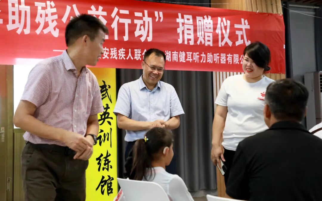9月8日,湖南省健耳听力助听器柳州融安县分公司向融安县15名听障残疾人捐赠价值72000元的15台助听器,并进行耳保健操授课、义诊、公益测听、免费试配助听器活动,弘扬社会扶残助残风尚。
