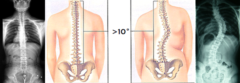 正常人的脊柱从后面看应该是一条直线,并且躯干两侧对称。如果脊柱偏移躯干中线,X光片上的弯曲角度(Cobb角)大于10°时,就称之为脊柱侧凸,俗称脊柱侧弯。