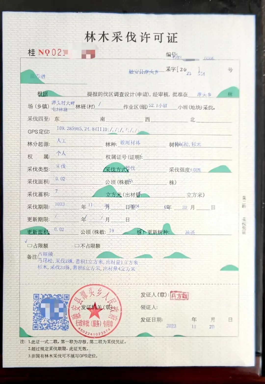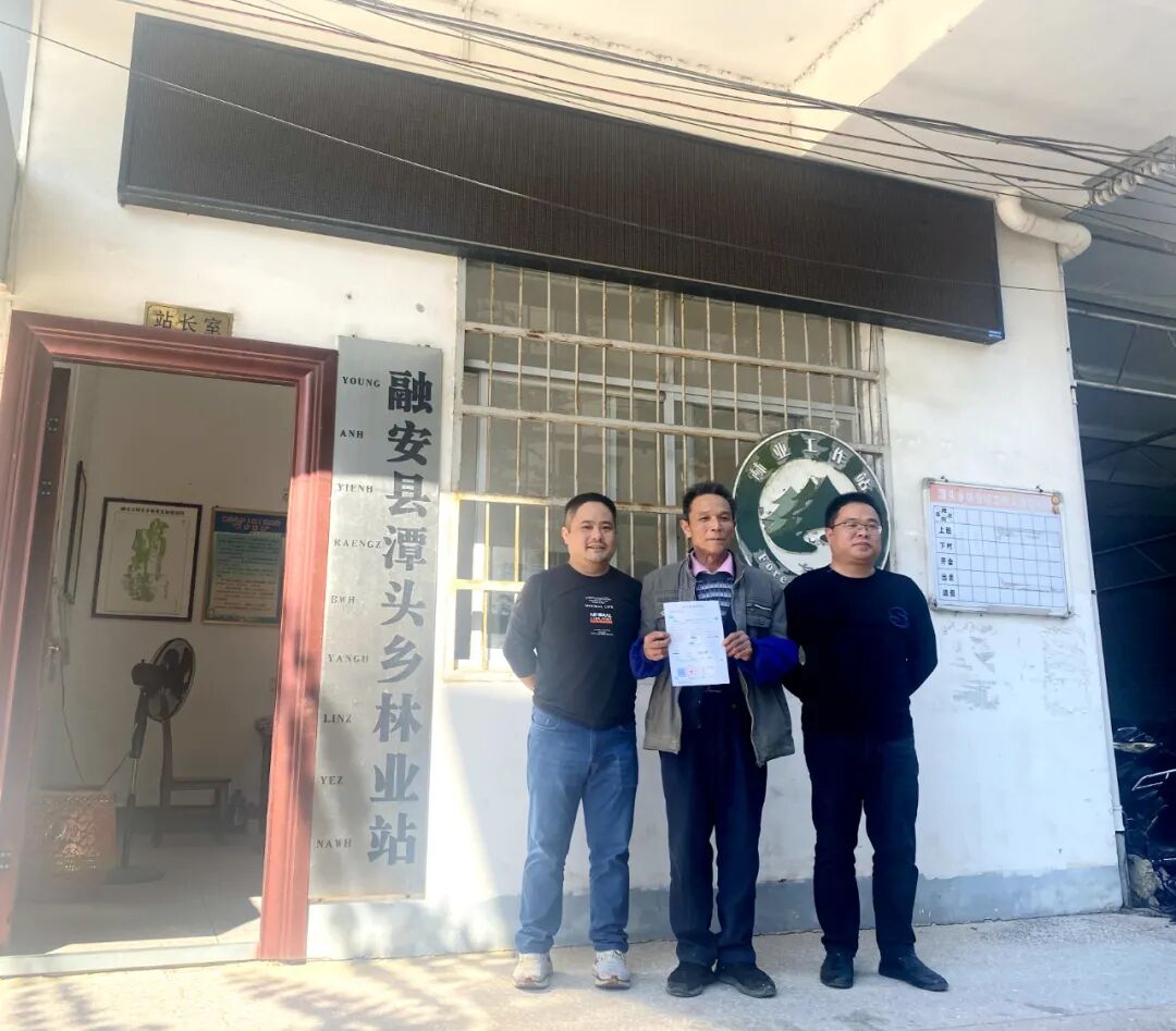 11月20日,潭头乡发出融安县第一份小额人工商品林采伐证,进一步优化、简化林农个人小额商品林采伐审批流程,为广大林农提供便捷、优质、高效服务。