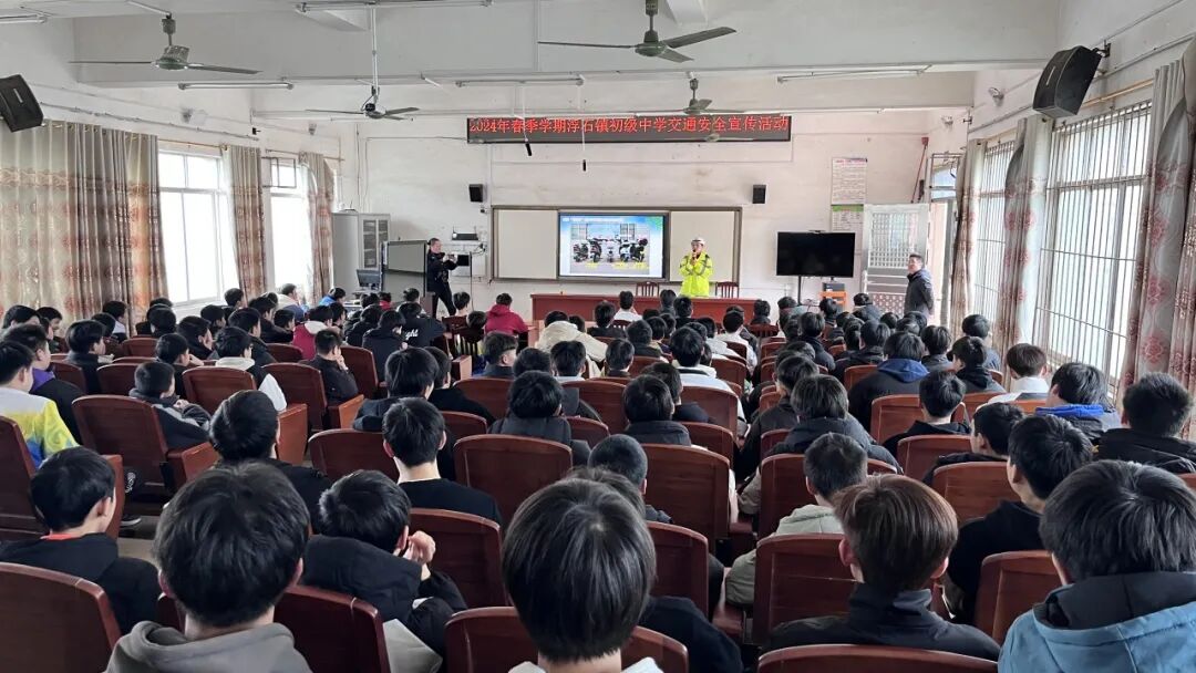 3月5日下午,融安县交警大队民警到浮石镇中心小学、浮石中学为学生们上了一堂生动的交通安全课。