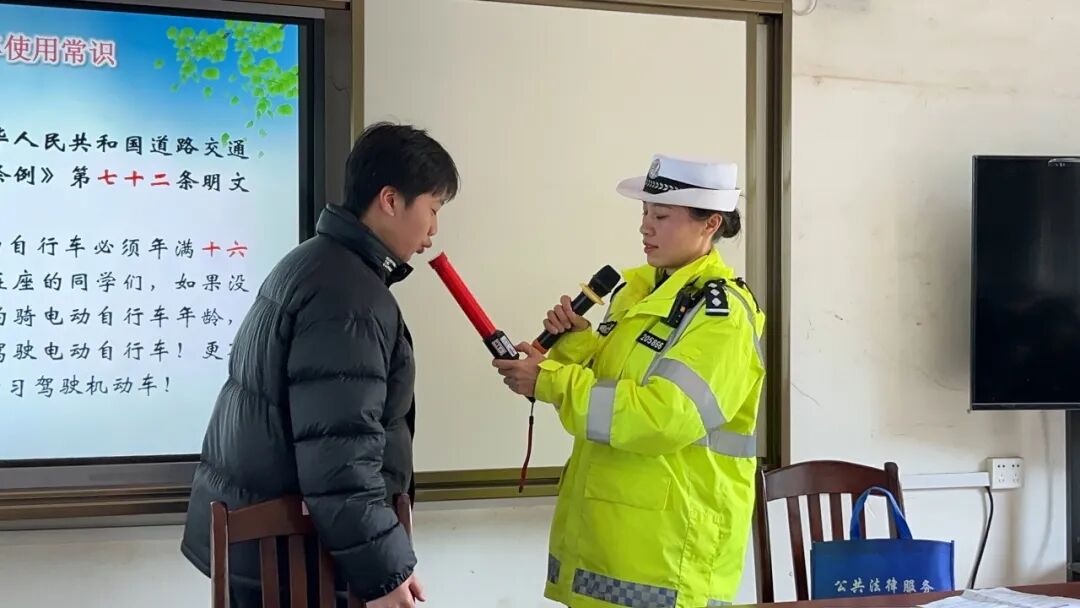 课堂上,民警针对不同年龄段的学生,分别从认识交通安全标志、正确佩戴头盔、安全乘车、文明出行等方面向学生们讲解交通安全知识,通过课堂互动、播放宣教短片,让学生们深刻认识到不文明行为的危害和遵守交通法规的重要性,切实提高学生们的交通安全意识和法律观念。