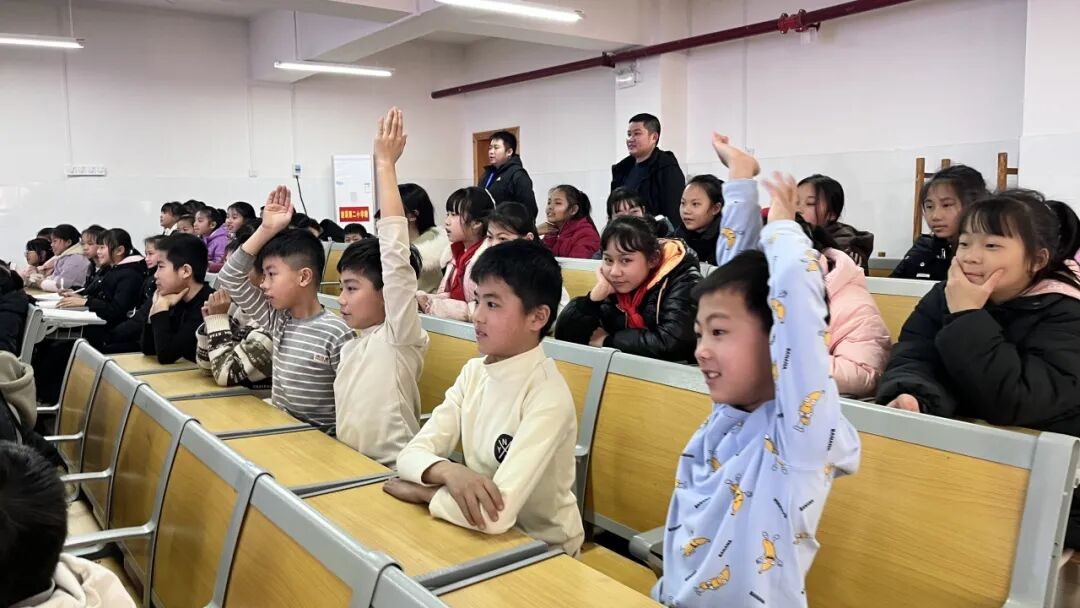 3月5日下午,浮石镇中心小学交通安全课现场,民警与学生们互动
