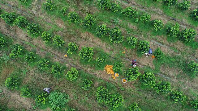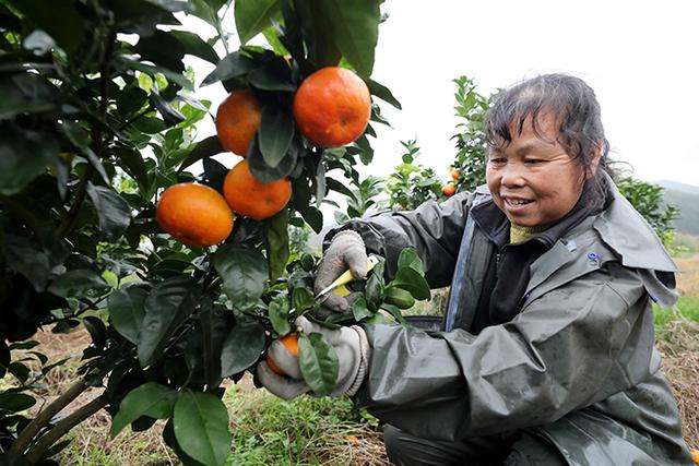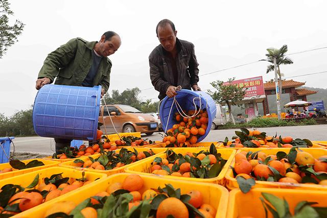11月20日,在广西柳州市融安县大良镇和南村西村屯,果农在田间采收蜜桔