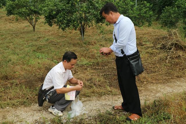 融安县农业农村局执法人员抽采金桔样品检测质量安全情况
