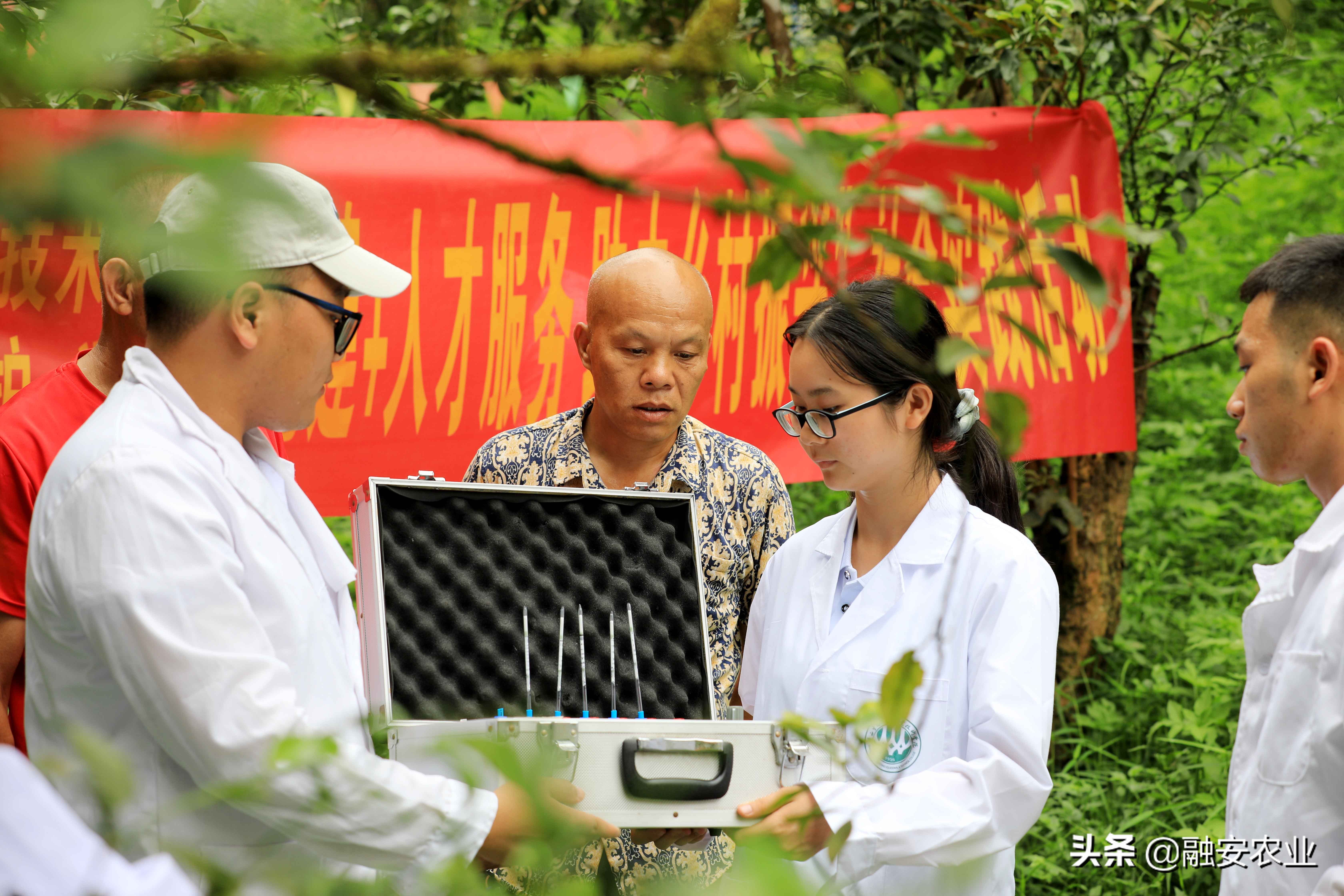 7月17日,在融安县大将镇才妙村,师生们对金桔生长环境进行数据采样分析。(谭凯兴 摄)