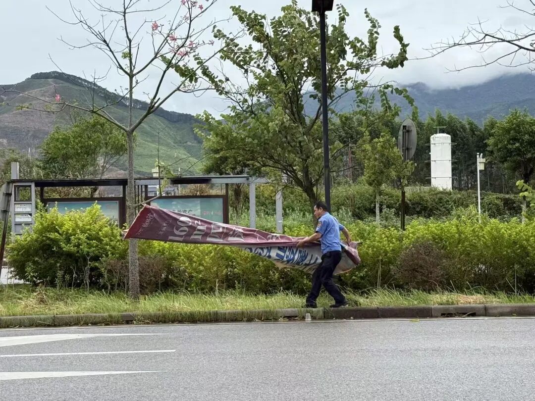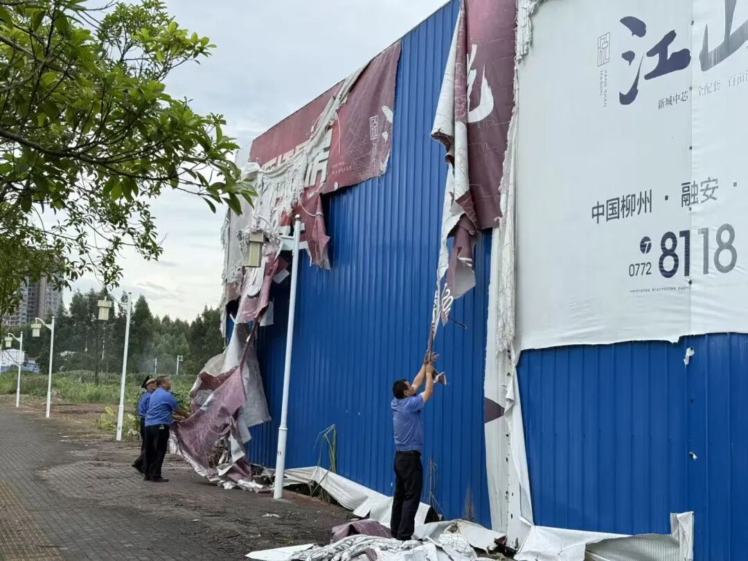 下一步,融安县综合行政执法局将持续坚守岗位,加大极端天气下的日常巡查力度,对辖区内户外广告牌、铁架栏杆等设施开展全面排查,做好设施修补与加固工作,确保及时消除各类安全隐患,全力保障市民出行安全。同时提醒广大市民,大风暴雨天气请切勿在施工围挡板、户外广告牌等区域逗留,避免意外发生。
