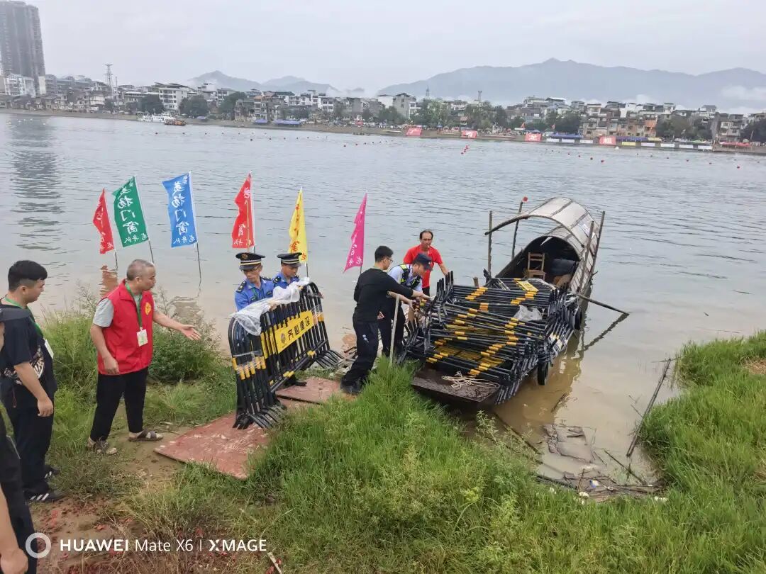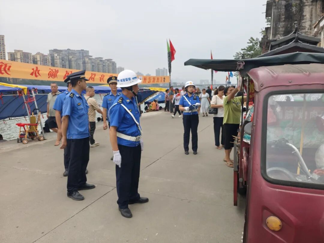 龙舟赛期间,执法人员配合龙舟赛主办方部署赛事