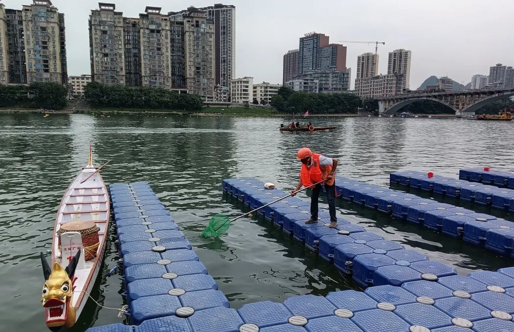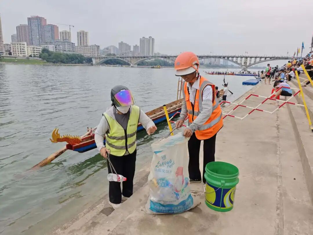 针对龙舟比赛卫生保洁压力陡增的现状,融安县综合行政执法局在节前周密部署,认真统筹,安排县城区环卫站及时调整节日期间的工作计划,每日清运从2次增至3次,新增20余处垃圾投放临时点,增派150余名环卫工人分成5个小组,以“分片负责、动态清扫”模式,对河岸、观众席及周边道路开展不间断保洁,为广大比赛选手、观众和游客营造了水清岸洁的大赛环境。