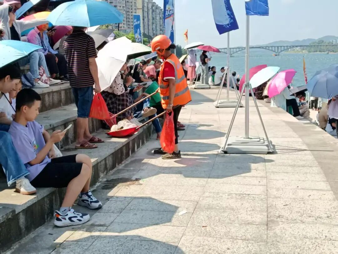文旅活动是城市文化的鲜活名片,也是拉动假日经济的重要引擎。9月30日-10月2日广西龙超——2025年融安龙舟公开赛暨第二十四届长安龙舟大赛在融安县隆重举行,“执法蓝”和“环卫橙”不停的穿梭于人群中,开启不间断的秩序巡查和卫生保洁,全力做好龙舟赛幕后保障工作。