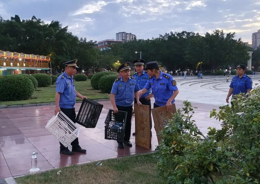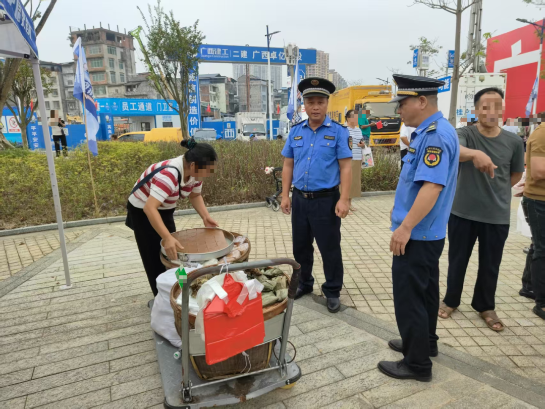 龙舟赛期间,执法人员正在处置乱摆乱卖行为