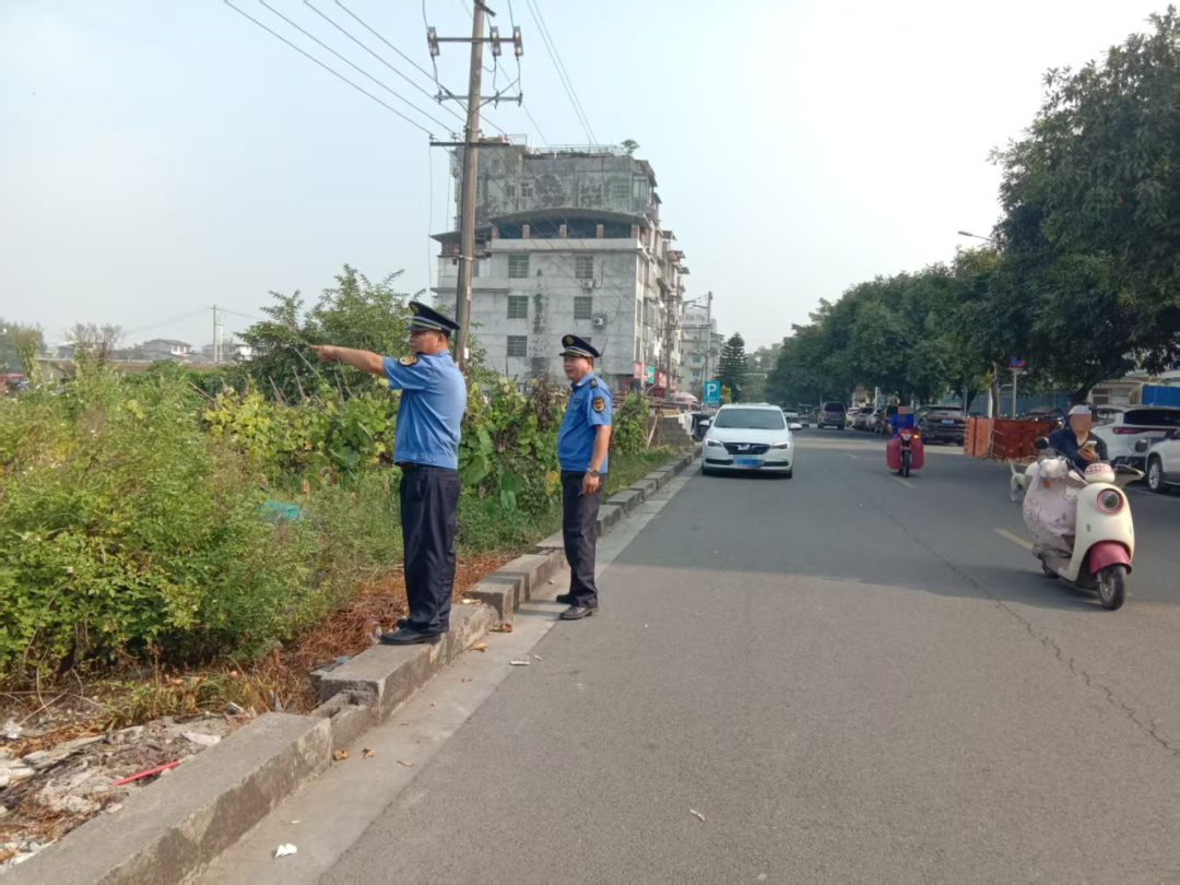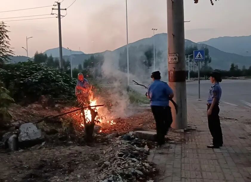 执法人员正在对县城区露天焚烧易发点开展常态化巡查
