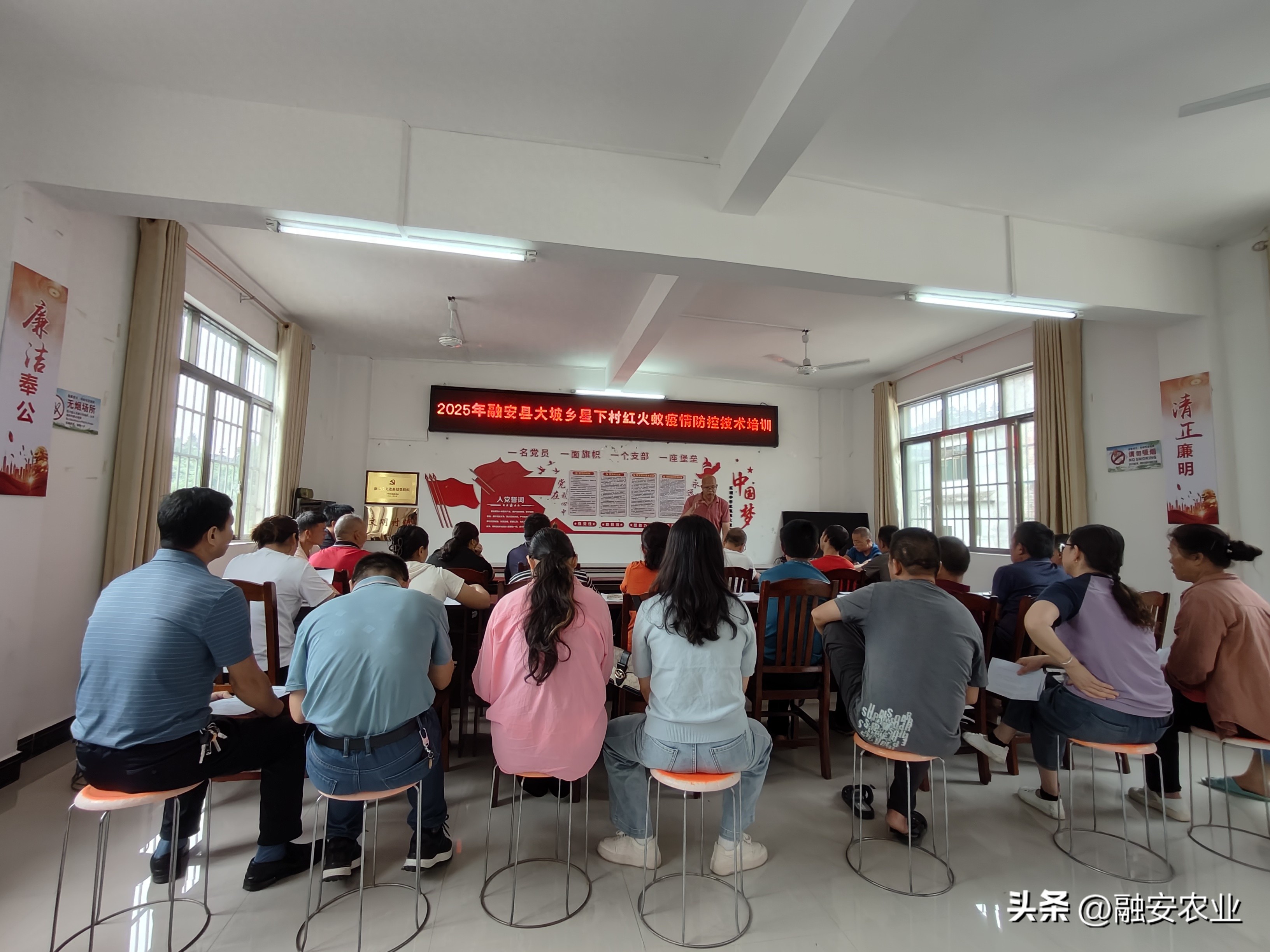 近日,为有效普及外来物种红火蚁防控相关知识,保障融安县农业生产安全和人民群众身体健康,今年以来,融安县农业农村局组织技术人员到全县各学校、乡镇、村屯开展外来物种红火蚁防控技术培训。