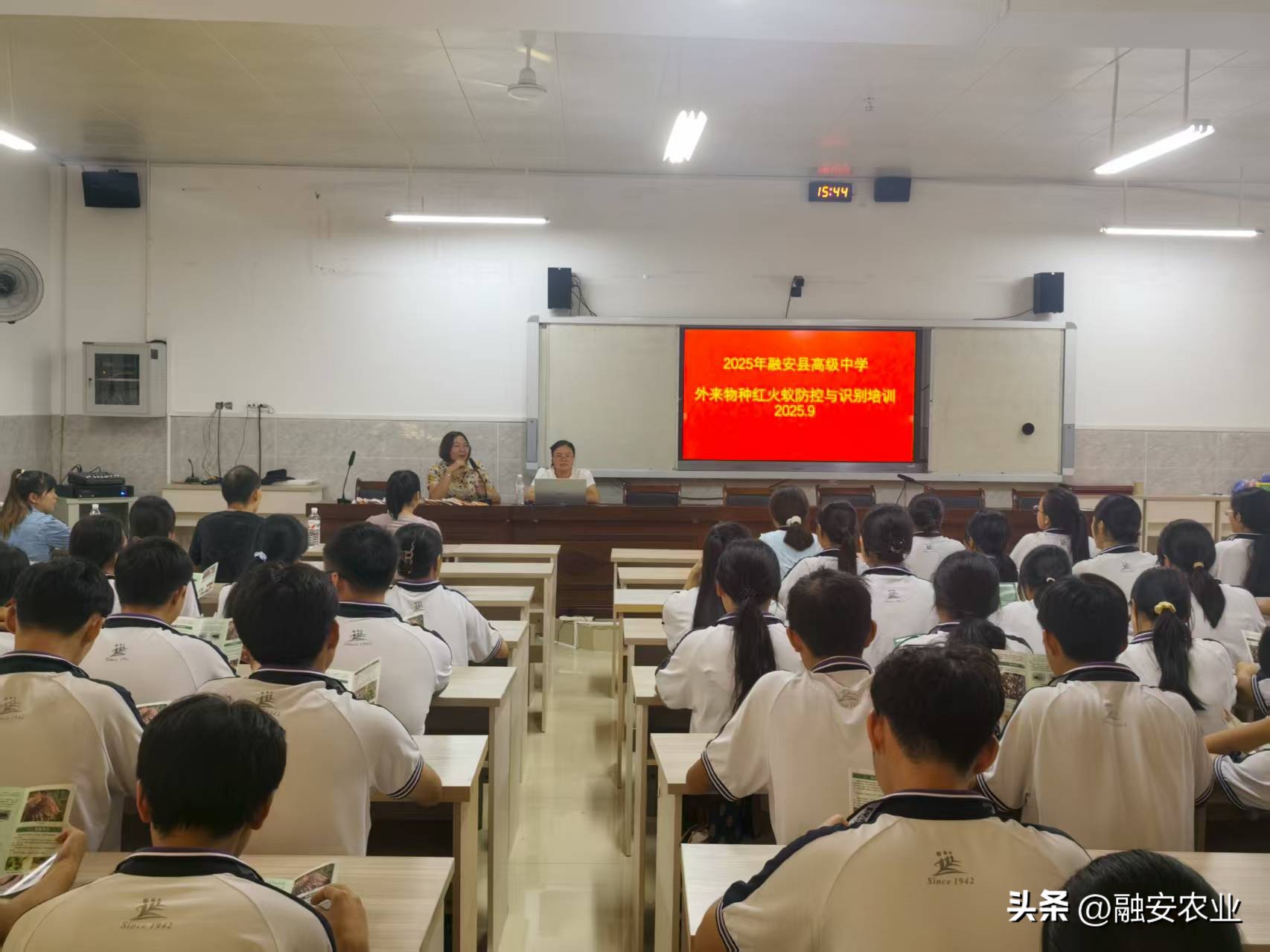 融安县农业农村局植保站副站长叶海丝到融安县高级中学开展外来物种红火蚁防控技术培训