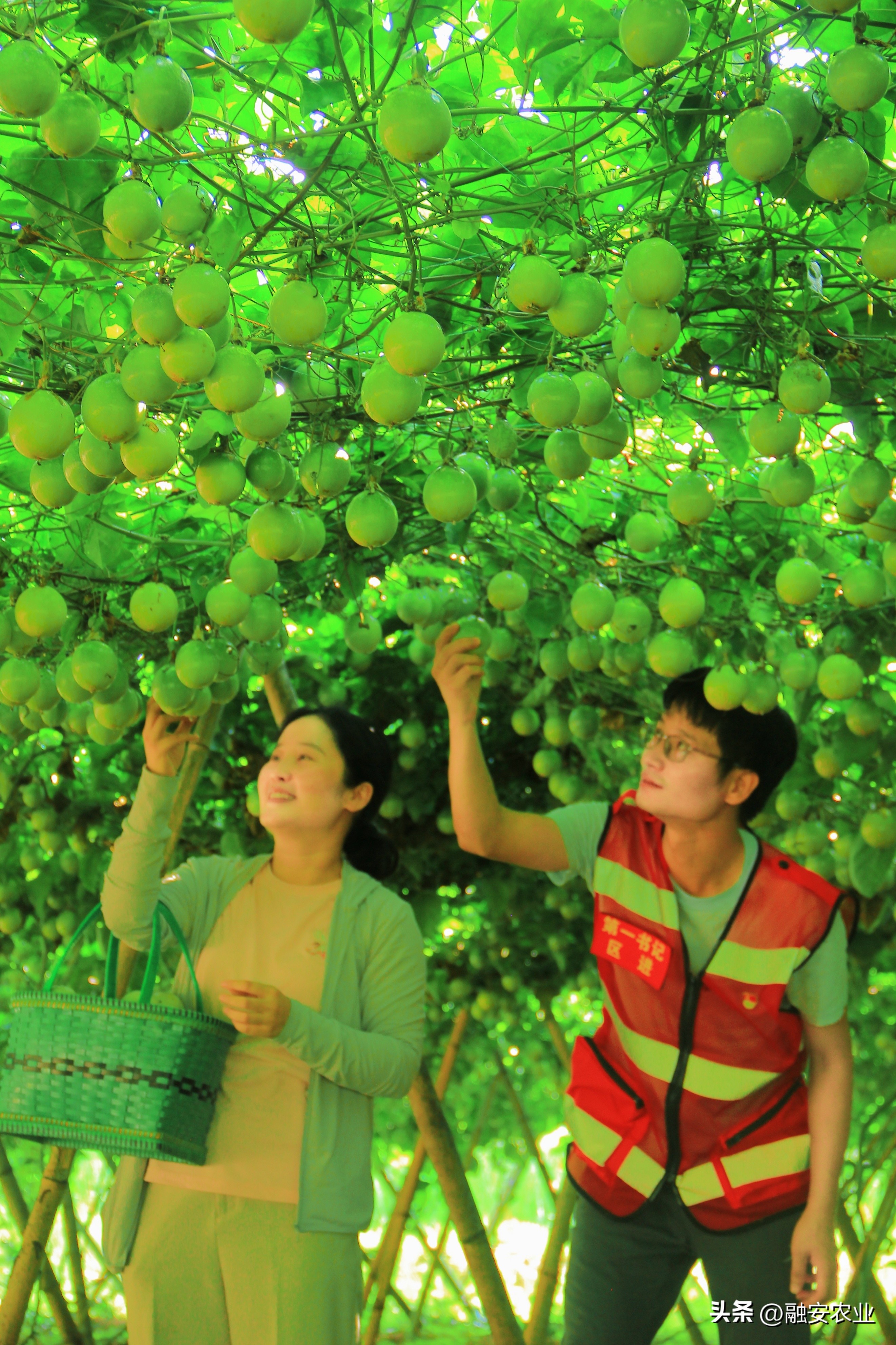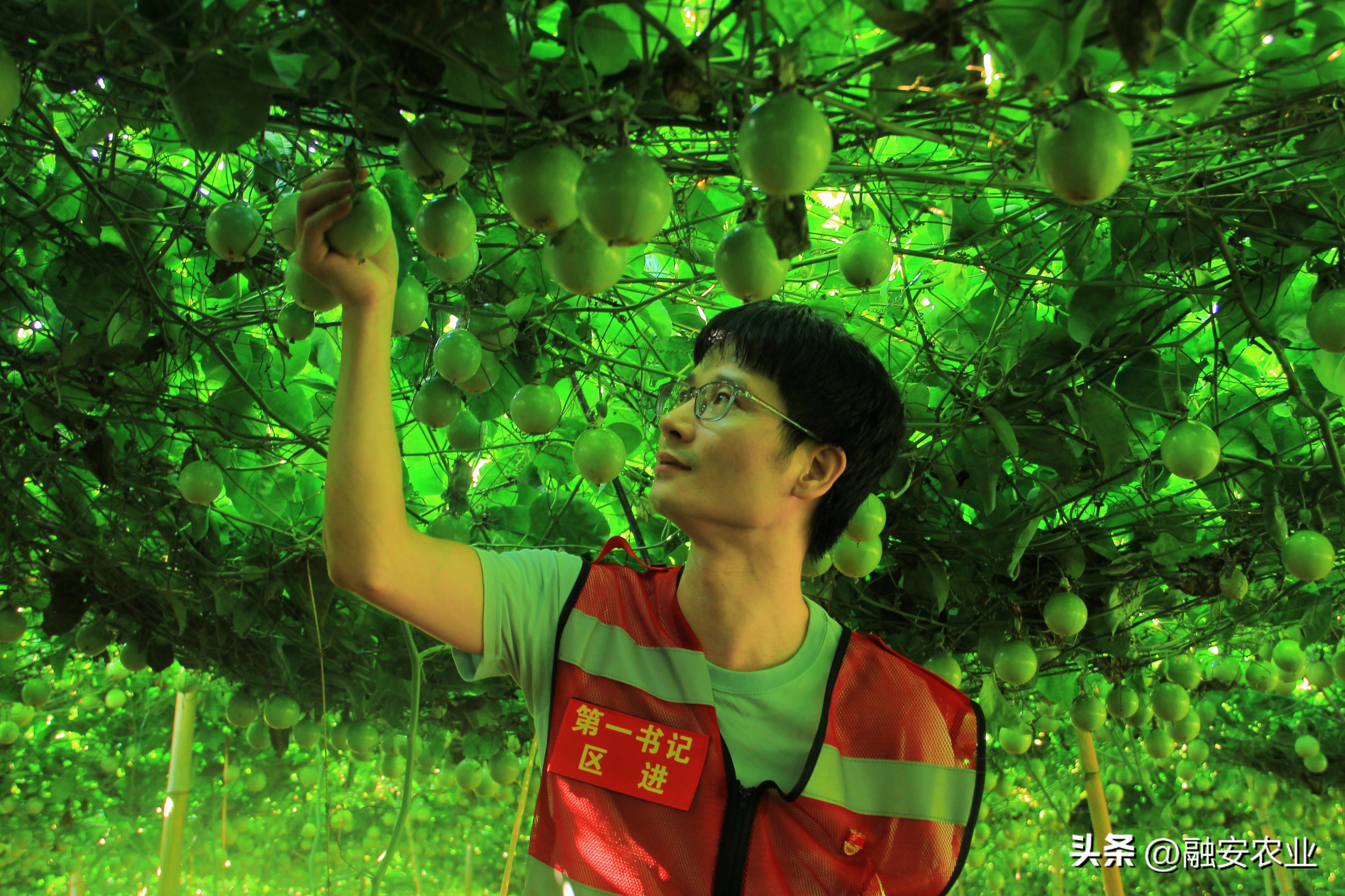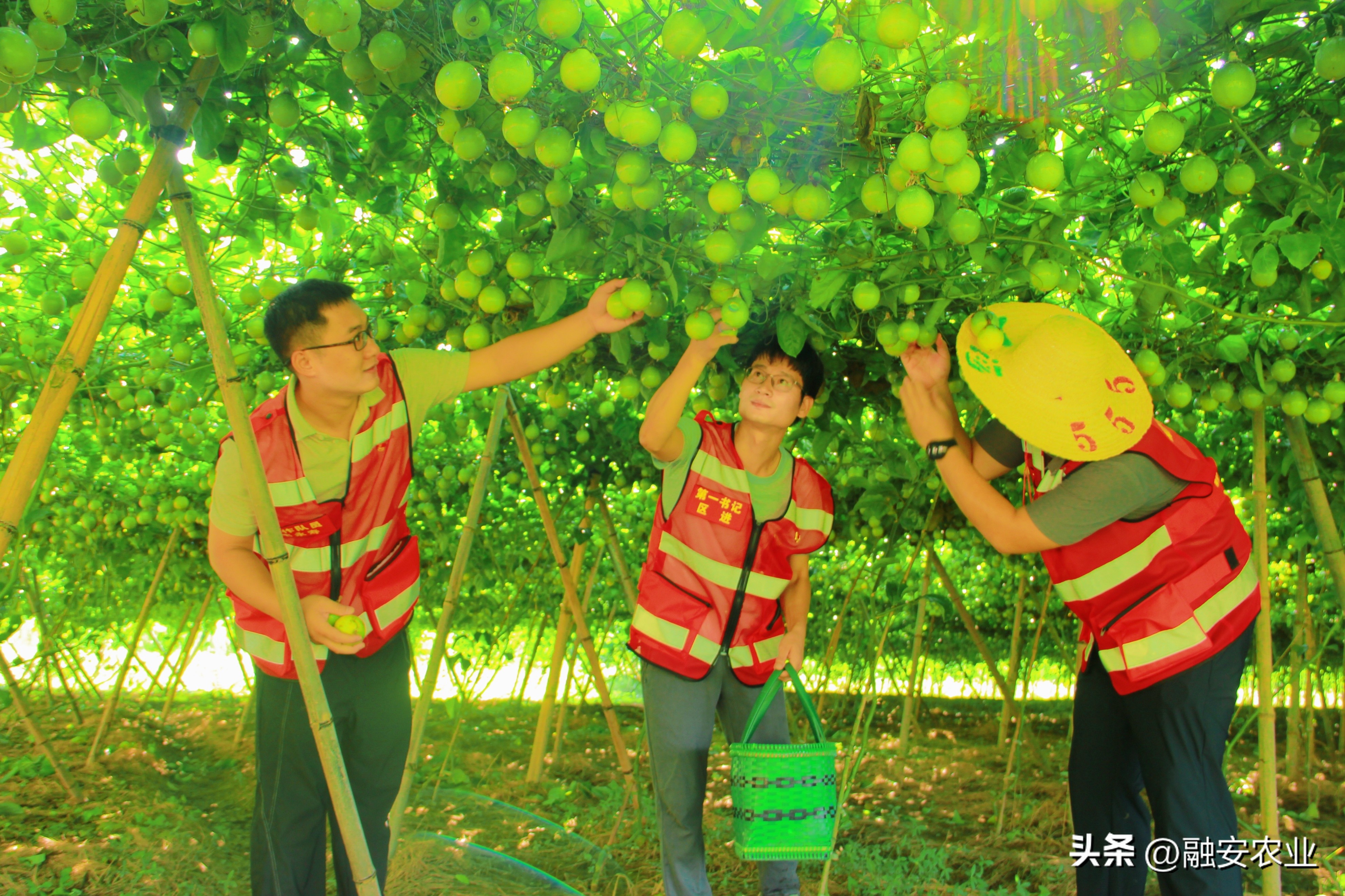 融安县东起乡崖脚村驻村第一书记在协助种植户采摘黄金百香果