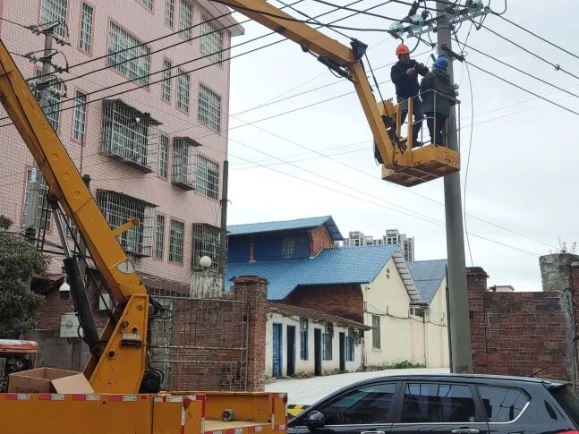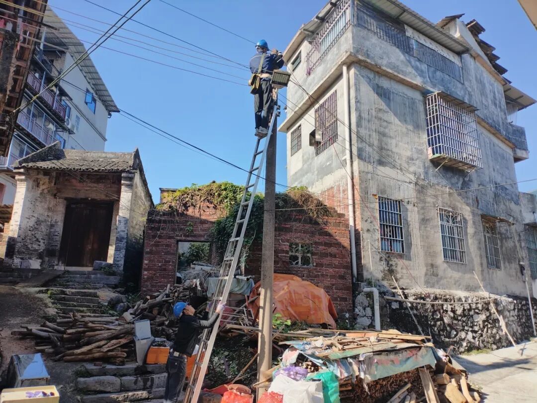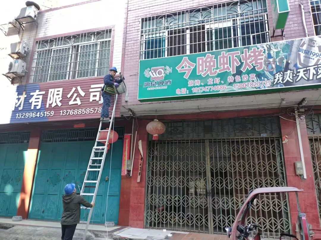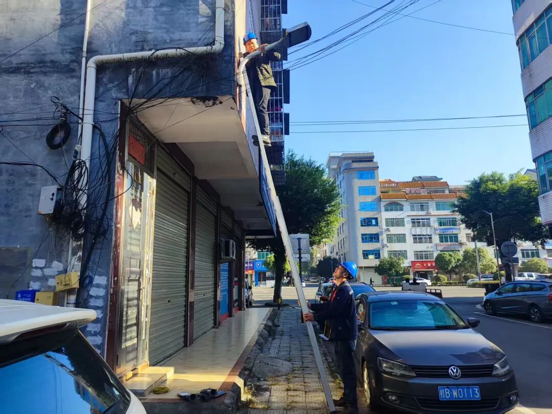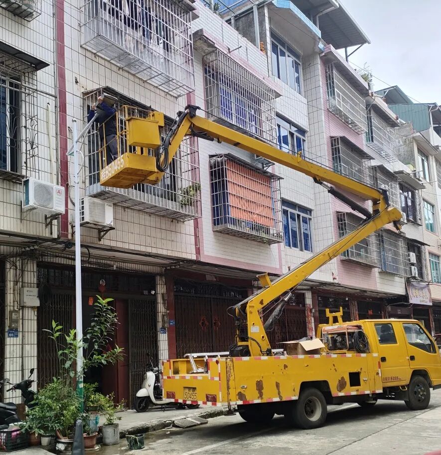 融安县路灯管理站工作人员在县城内各背街小巷开展路灯安装维修工作