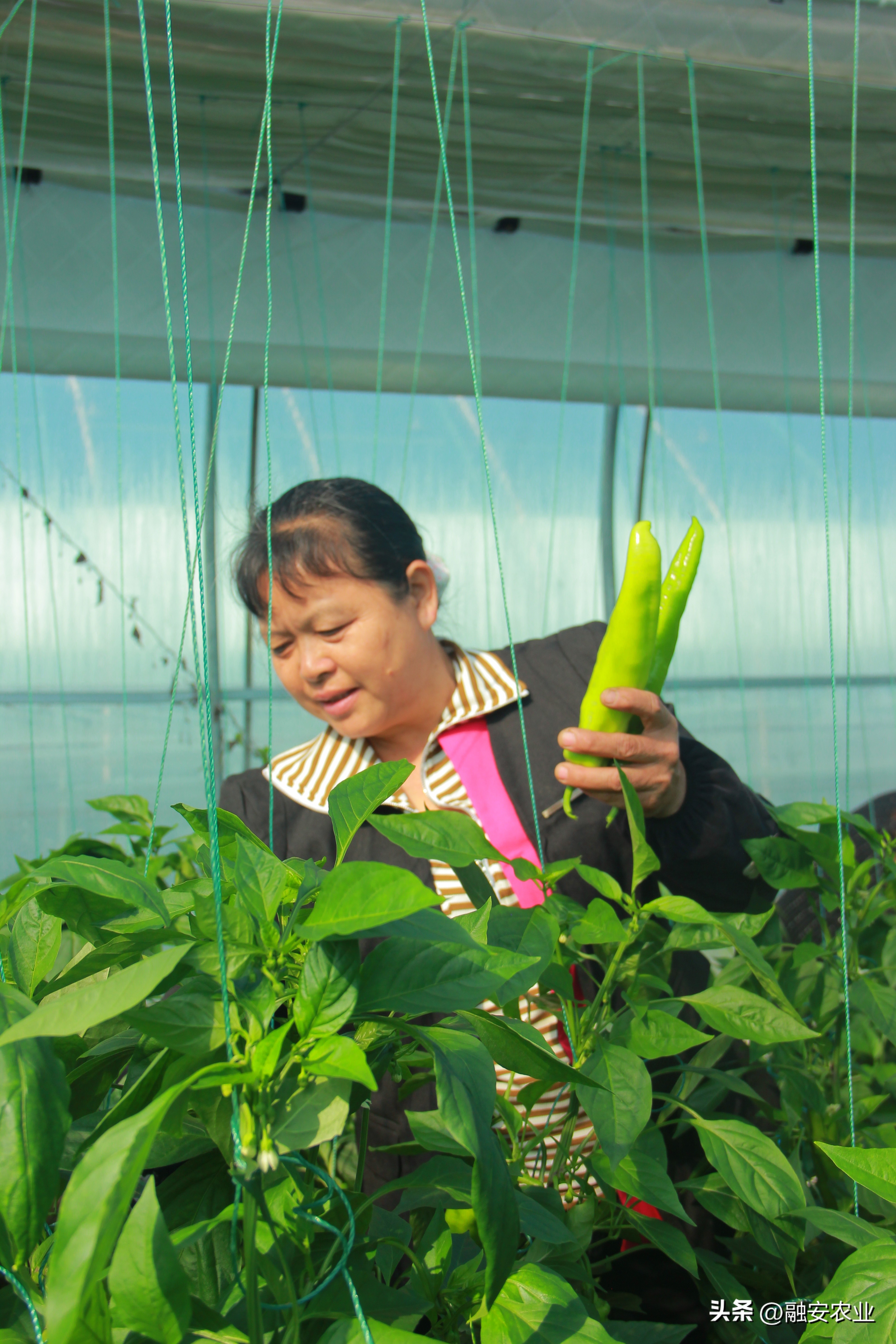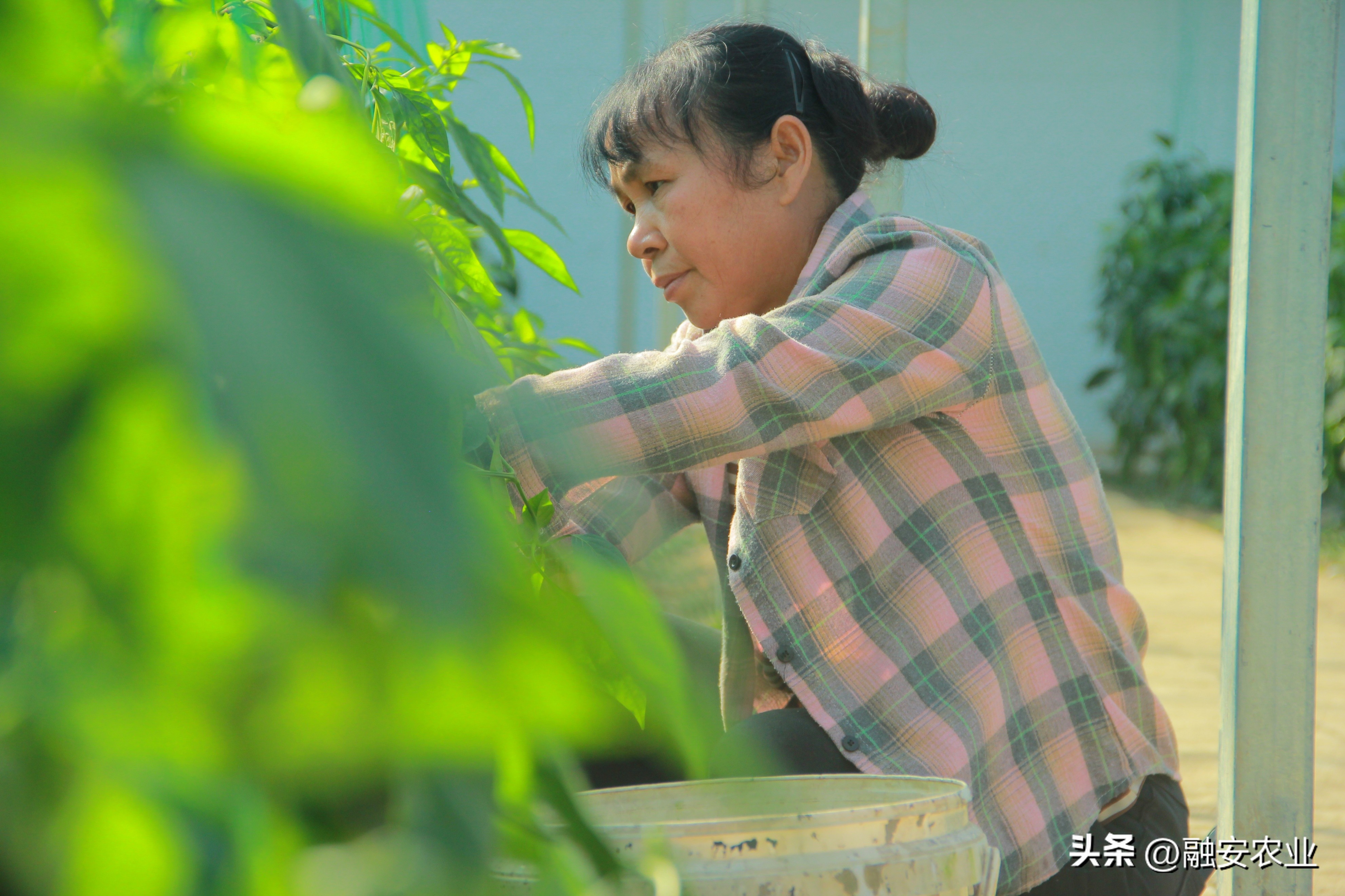 融安县浮石镇泉头村蔬菜大棚种植基地种植户在采收辣椒