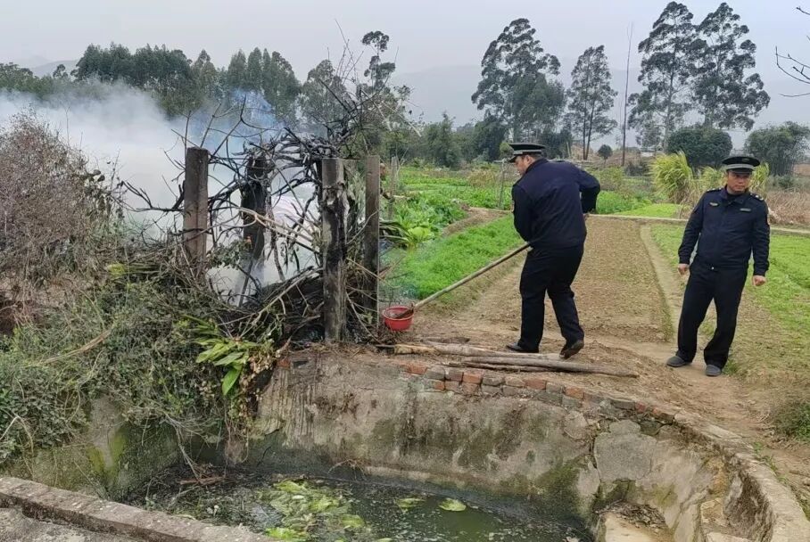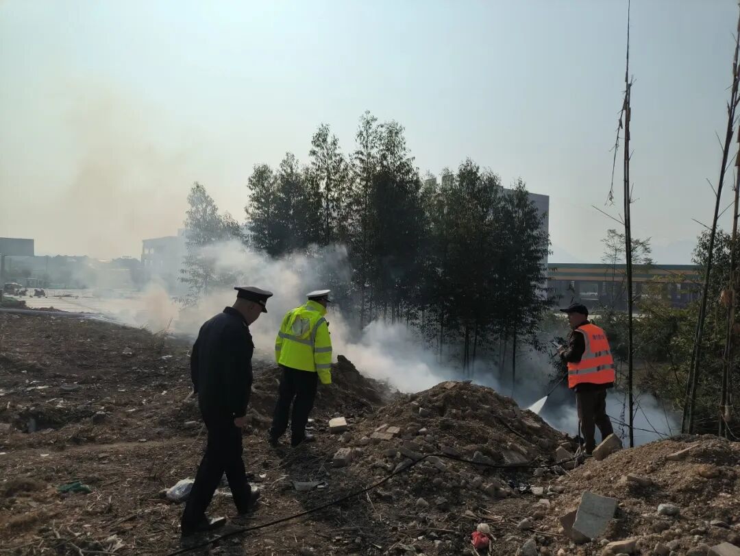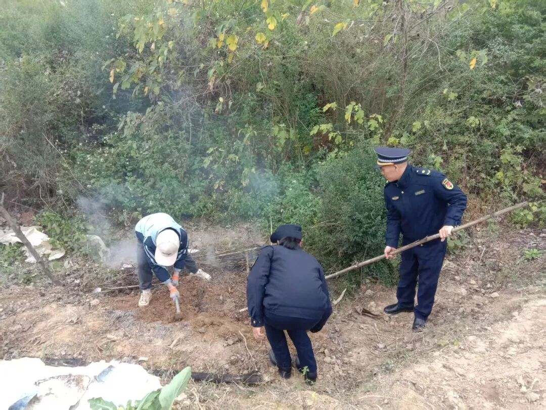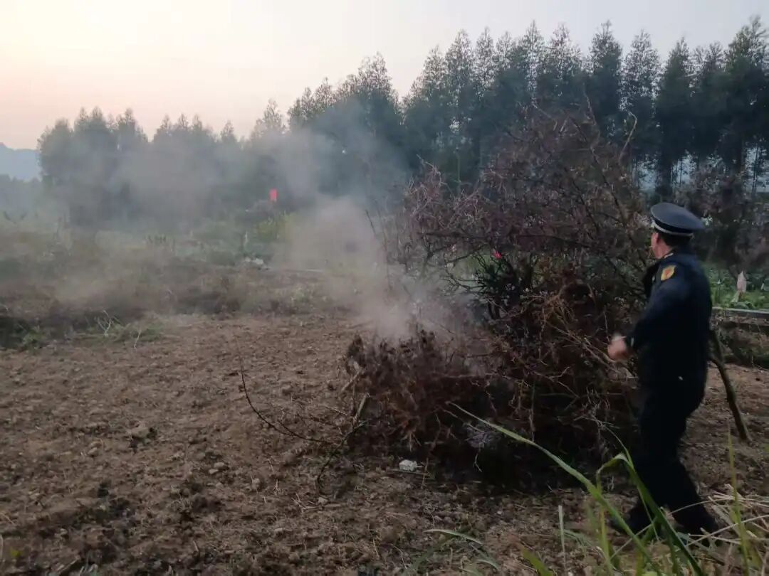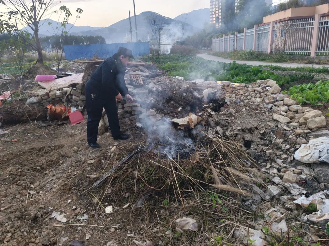 12月21日,执法人员在长安镇余家寨处置露天秸秆焚烧行为